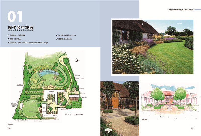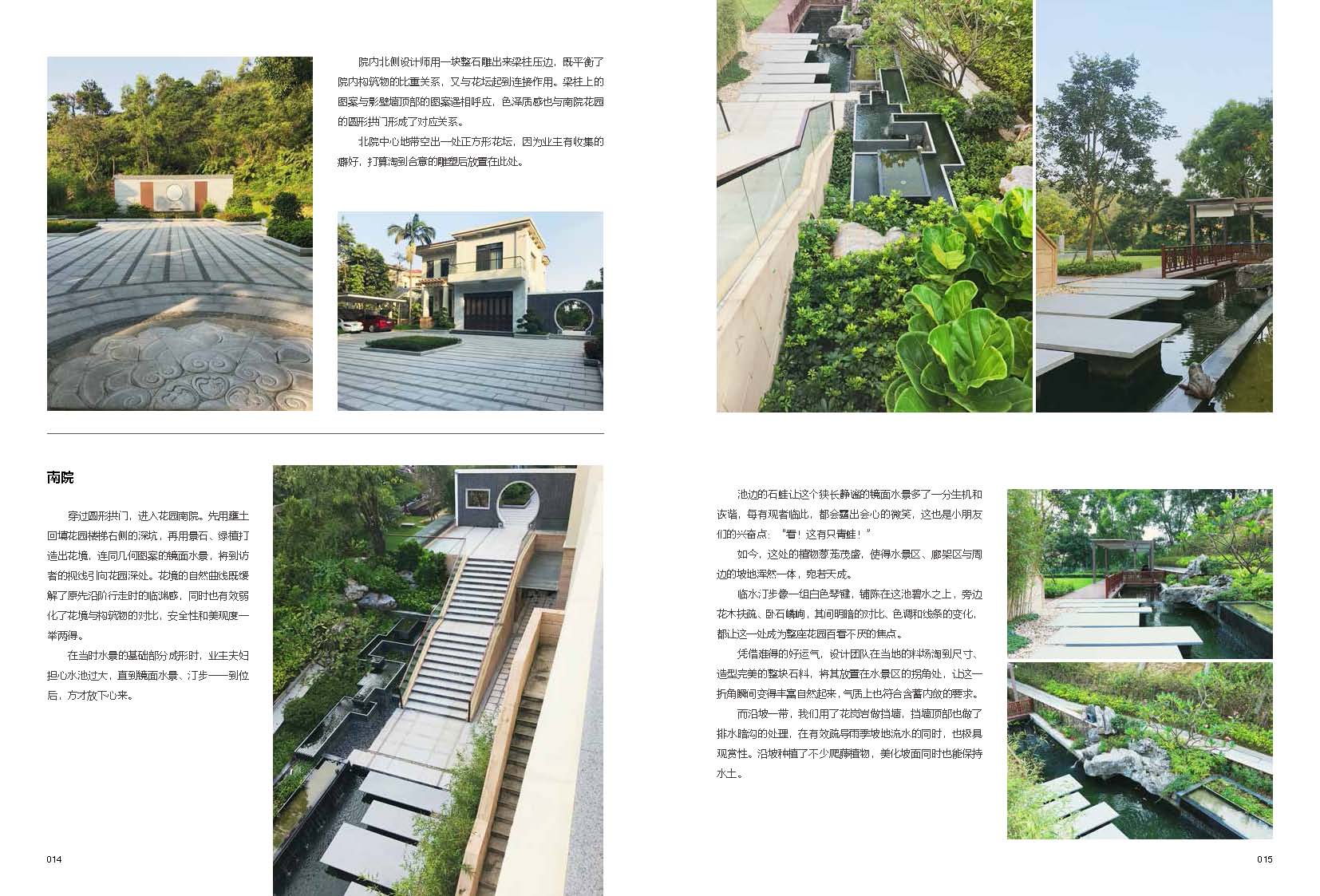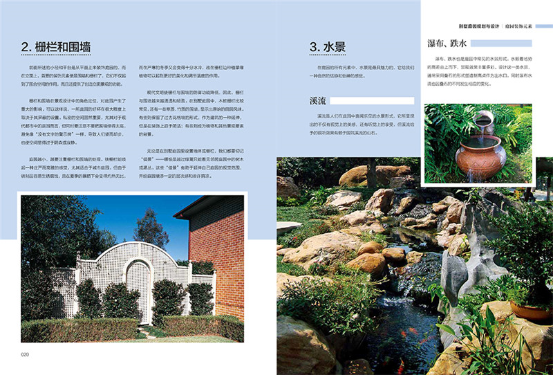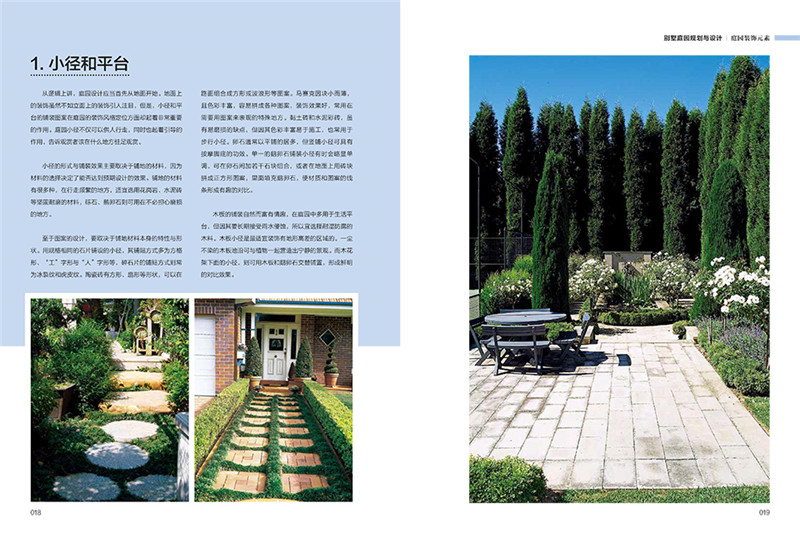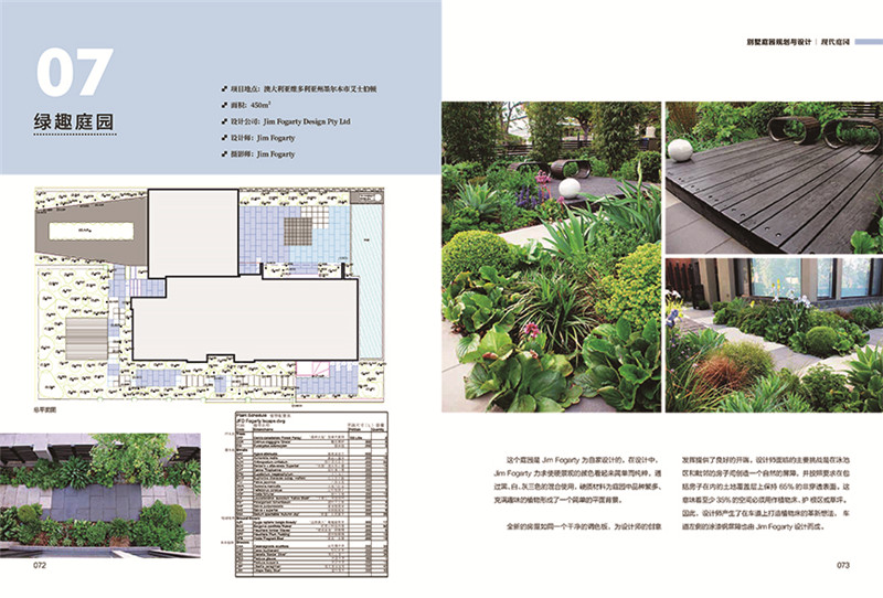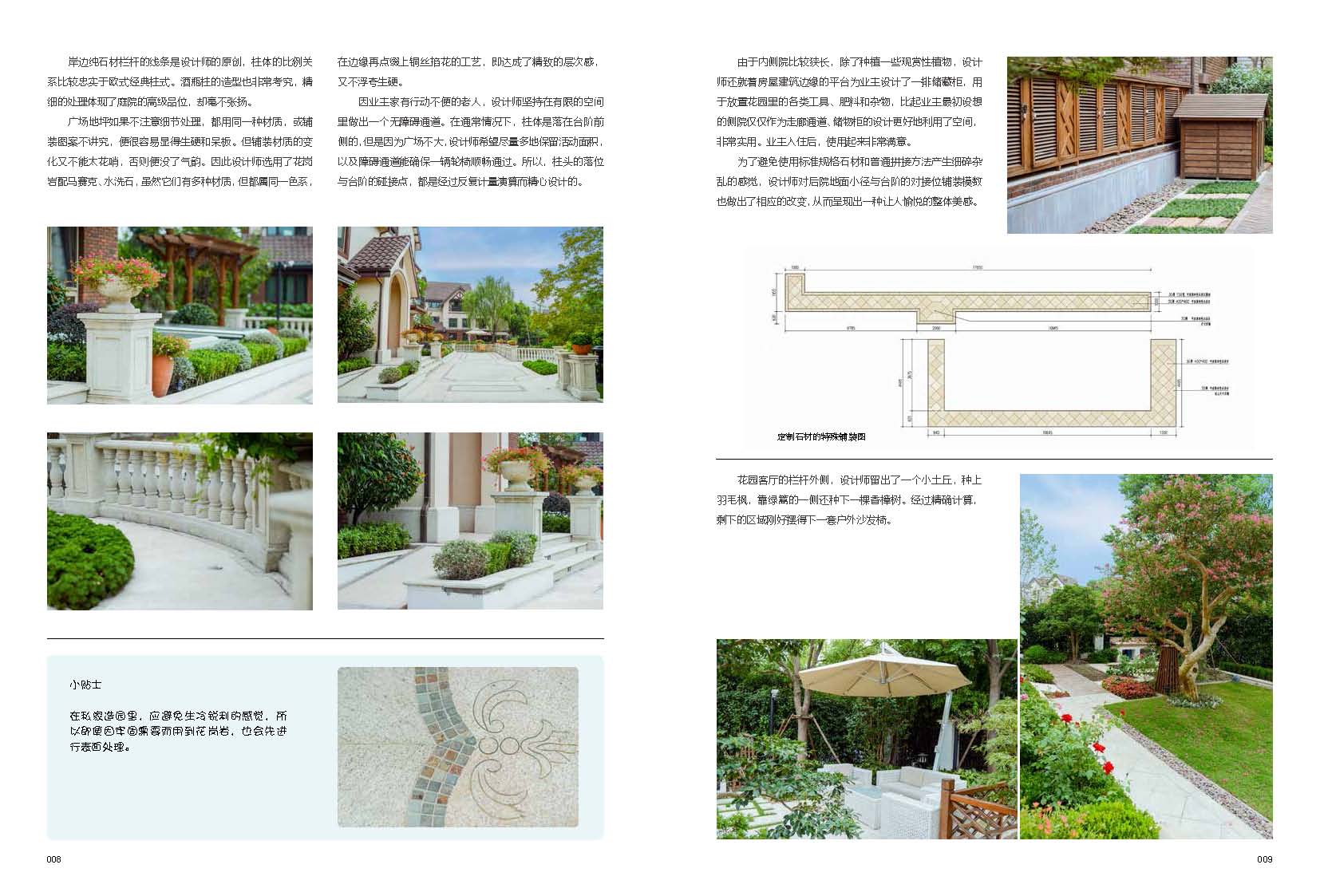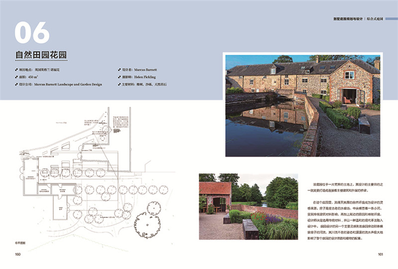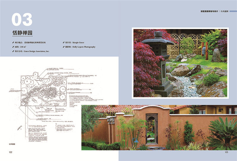 每個案例均配有平面圖,有些還有素描圖和三維手繪圖,已經完成的景觀部分,全部用圖片來展示庭園全貌,包括一些細部節點,如植物、鋪地、水景及雕塑等。