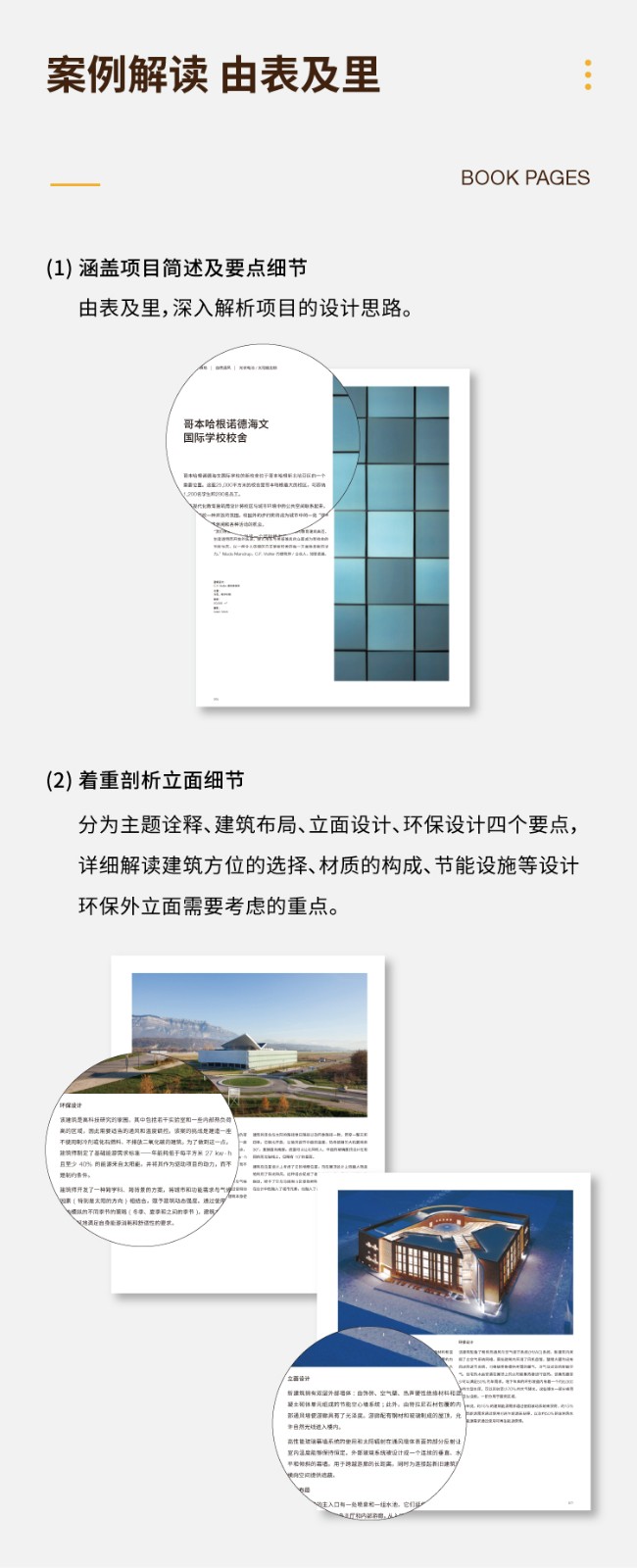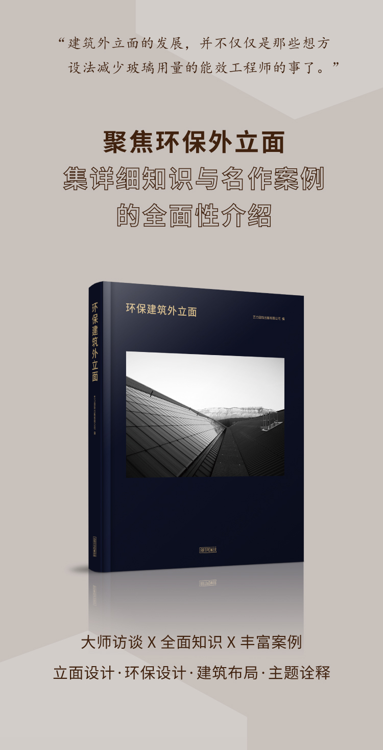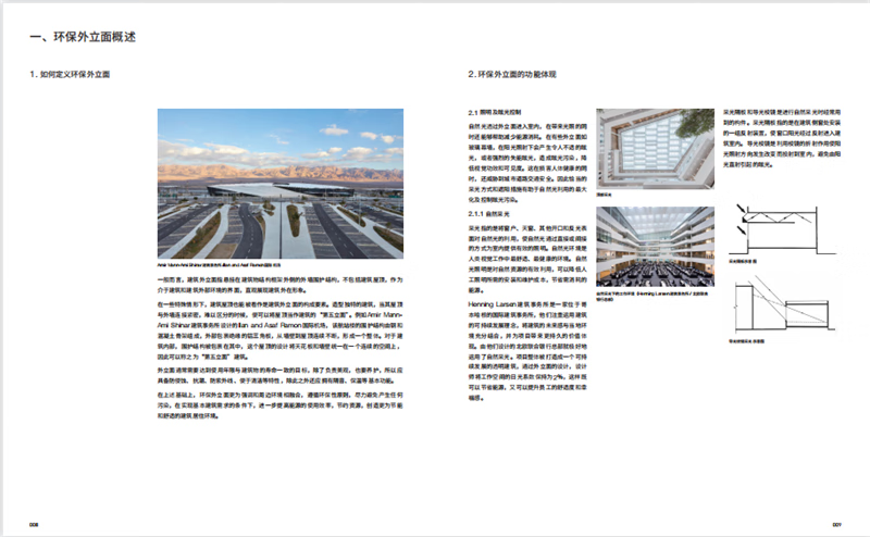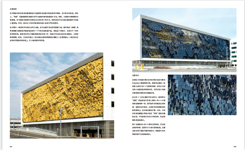 3.案例解讀部分包含項目簡述及項目要點兩部分,由表及裡,深入解析項目的設計思路。 其突出亮點是:著重剖析立面細節在環保方面的運用和作用,包括建築方位的選擇、材質的構成、節能設施等需要考慮的要點。 實用性強,對建築領域從業者有很强的參攷性。