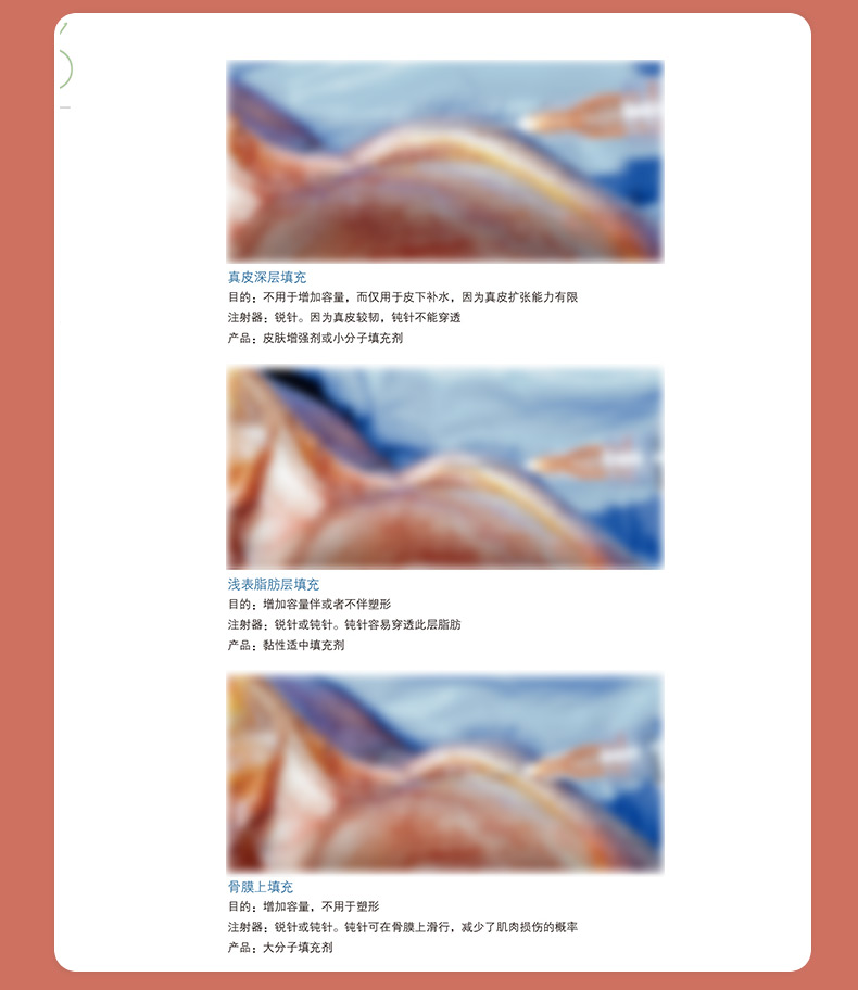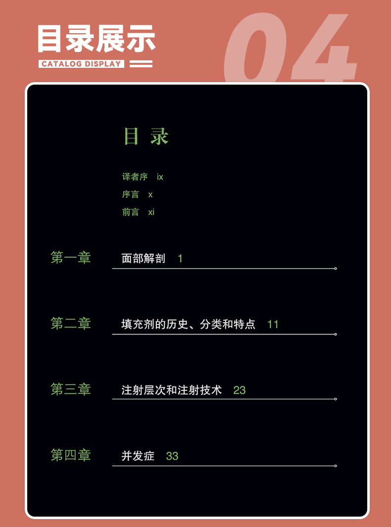 本書專注於皮膚填充劑對面部的填充,從面部美學分析、照片拍攝技巧、肌肉解剖、注射要點分析、玻尿酸與肉毒毒素聯合應用,到術前術後效果對比,由淺入深,事無巨細地解釋得清晰詳盡,可以說是和高階微整形醫生的價值觀高度契合的。