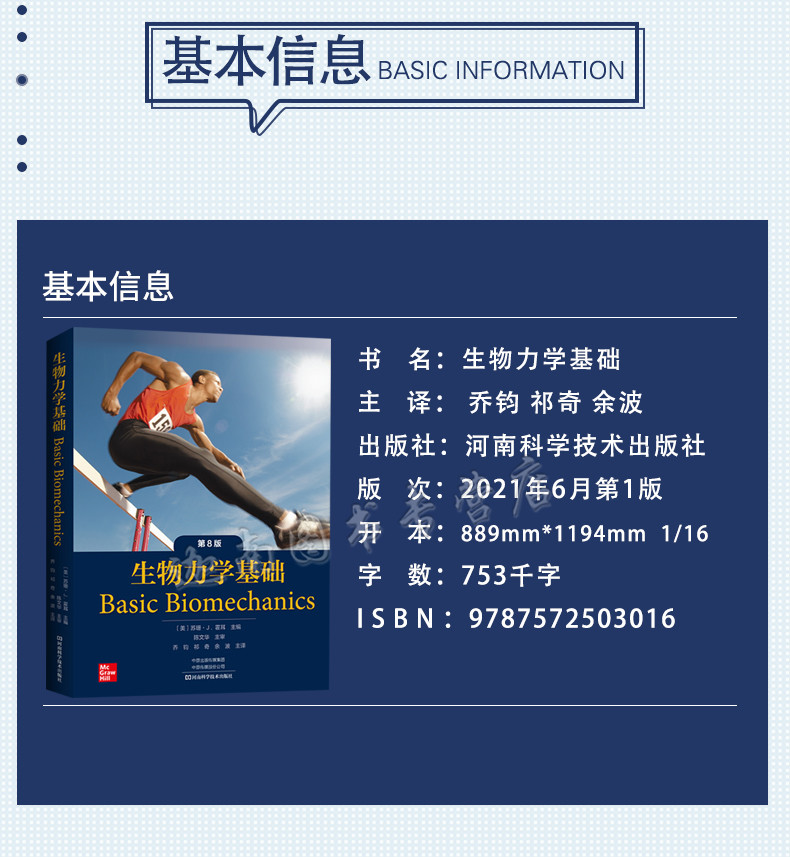《生物力學基礎》重點講述人體解剖和運動能力,並輔以相關運動、臨床和日常生活應用的例子加以解釋。