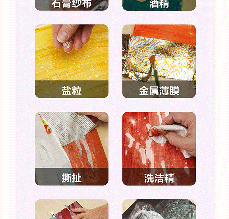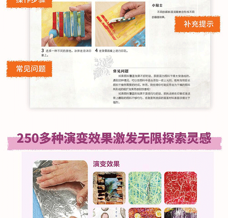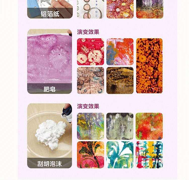★ 多樣的演變效果:藉助簡單的工具,配合不同的色彩與材質使用,每種方法均能達到奇妙多樣的演變效果。