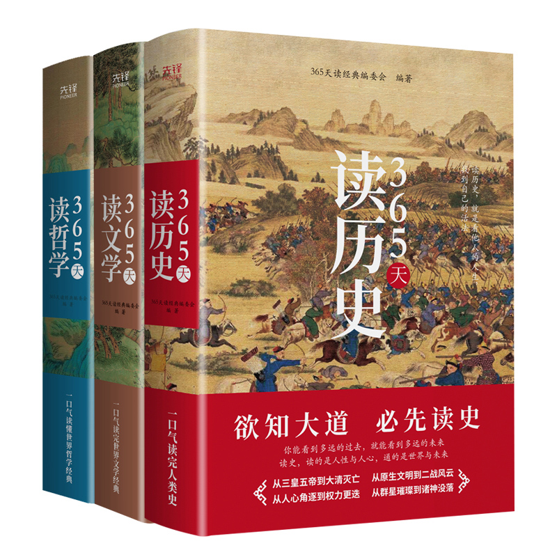 1.一口氣讀完人類燦爛文化!本套叢書包括《365天讀歷史》《365天讀文學》《365天讀哲學》,內容涵蓋古今,貫通中西,不管是想要讀文學、哲學,還是想要了解歷史,這一套書滿足你的所有閱讀需求!