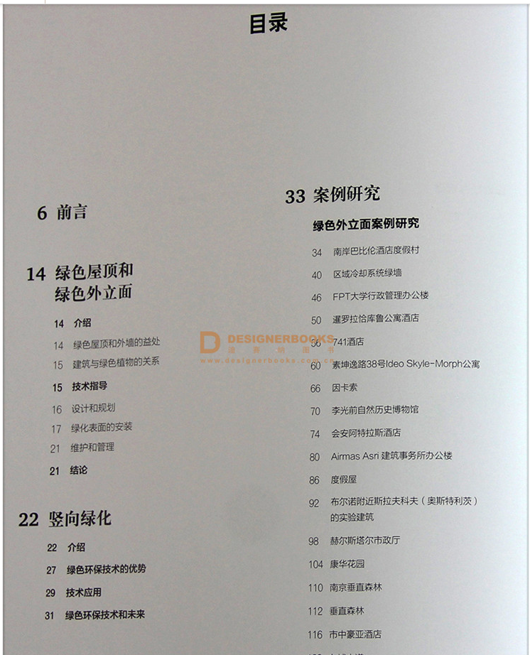 在城市環境建設面臨挑戰的時刻,綠牆、建築牆面綠化與屋頂綠化的出現開闢了一種讓人們在城市中能夠感受自然的新途徑。豎向綠化對可持續景觀的維護和發展做出了重要的貢獻,本書主要分為技術指南和案例分析兩大部分,通過40多個國際知名的景觀案例,說明了豎向綠化的優勢、現場規劃、施工與維護等。本文闡明了豎向綠化的概念以及能夠產生的效益,針對未來城市綠化的發展趨勢,提出了把“水泥城市”變為“森林城市”的構想。