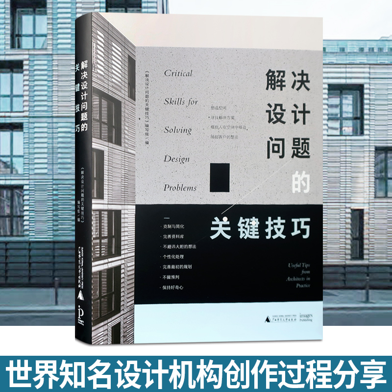 20位建築師傾力奉獻,澳大利亞lmages、英國ACC聯合出版,隨著項目的開展,建築師面臨諸多挑戰,一個出色的建築師必須知道如何對現狀做出評估,快速 有效的發現設計問題,並找到相應的決絕方案;對一些引導設計的基本原則進行回應的方式來分析他們的見解,並提出解決疑難設計問題的不同方法。