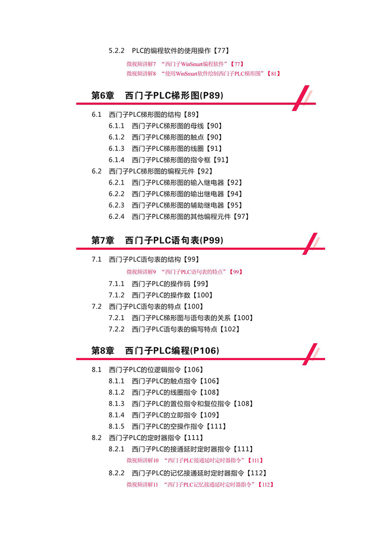 為了方便閱讀,提升學習體驗,《PLC編程從零基礎到實戰:圖解視頻案例》採用全彩圖解微視頻講解互動的全新教學模式,在內頁重要知識點相關圖文的旁邊附印了二維碼。 讀者只要用手機掃描書中相關知識點的二維碼,即可在手機上實时瀏覽觀看對應的教學視頻,輕鬆領會相關知識。 這不僅進一步方便了學習,而且大大提升了本書內容的學習價值。