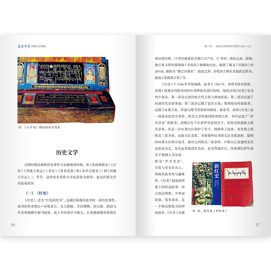 藏族文學史上下幾千年,內容涵蓋非常廣泛。 本書創新編排思路,從歷時和共時兩個方面,以口傳文學類型、書面文學類型的劃分管道,對西藏文學進行了全面梳理,展示了頗具雪域高原民族特點的瑰麗文學“松石寶串”,以西藏文學發展脈絡和各類代表性作品,引導讀者穿越西藏歷史的塵埃,認識真實西藏。