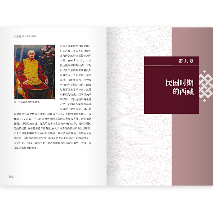 “人文西藏”叢書旨在通過新手法、新視角,點面結合,立體呈現,講好中國西藏故事。 全套叢書分為兩輯:一是“西藏風情”系列:包括《雪域經輪——西藏宗教考釋》《藏地風土——西藏民俗趣談》《物華天寶——西藏藝術掠影》《高原華章——西藏文學擷英》《流年乾坤——西藏歷史述略》,全方位描繪西藏風土人情和歷史、文化風貌,向國內外讀者展示西藏魅力和時代亮色; 二是“西藏歷史文化名人”系列:包括《松贊幹布》《元朝首任帝師八思巴》《九世班禪傳》《首席代錶阿沛·阿旺晋美》,通過西藏歷史人物形象側面反映西藏社會的演進和轉折,讓歷史人物走進新的歷史方位。