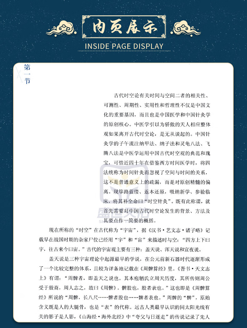 一門學科能不能在自身的原創基礎上適應時代、地域和人群的需求,在參與本學科當代課題的實踐中提升、發展和創新,這是檢驗其是否稱得起科學的試金石。 尤其是像針灸這樣的應用科學,它所依據的中國古代自然科學和醫學理論的精髓以及哲學思想都是通過科技層面來表達和驗證的,囙此對一種新針法的評估,首先要看其治療當代常見病、疑難病、罕見病的療效,同時還要看它的理論解析在同當代醫學交流會話中是否具有說服力。 《時空針灸學》正是緊緊圍繞“臨床效驗”和“理論解析”這兩方面,嘗試從中國醫學的原創覈心——中國古代時空論出發,對針灸的科學本質進行說明論證,對時空針灸方法進行解析。