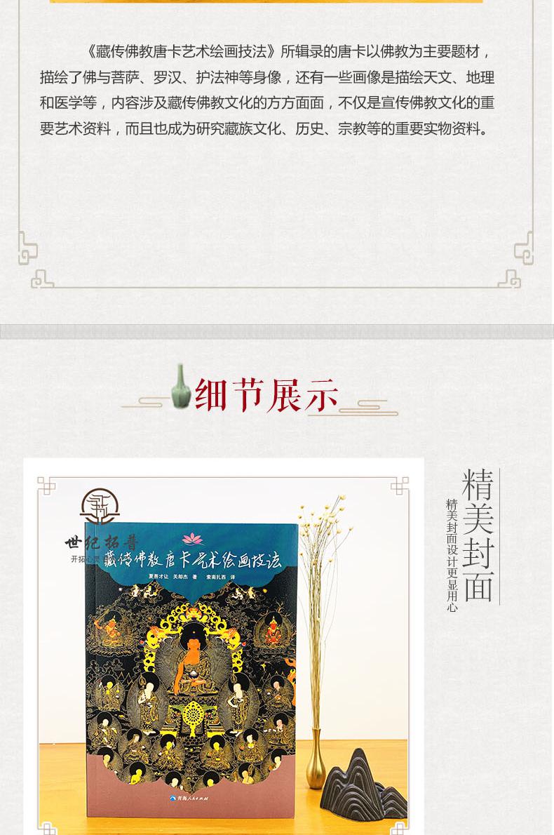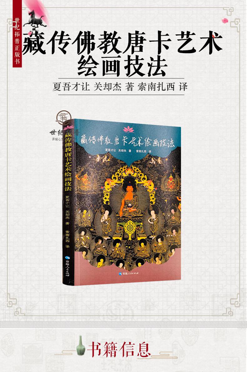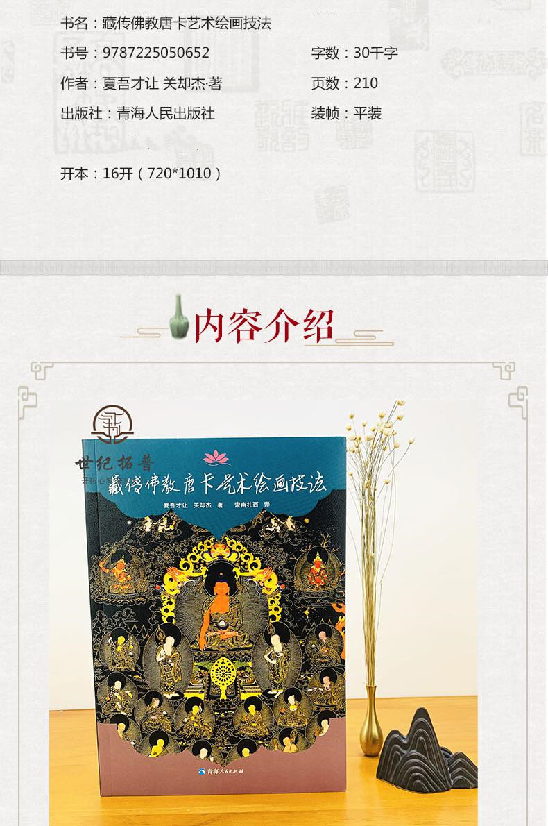 唐卡系藏文音譯,是繪製或刺繡在布、綢或紙上的彩色卷軸畫。 據史料記載,唐卡藝術的興起,可追溯到吐蕃時期中葉。 唐卡繪畫藝術歷史悠久,經久不衰,已成為藏傳佛教重要的藝術門類。 隨著藏族文化的傳播和發展,唐卡藝術越來越受到世人的喜愛。 現被列入世界非物質文化遺產名錄。 唐卡以佛教為主要題材,描繪了佛與菩薩、羅漢、護法神等身像,還有一些畫像是描繪天文、地理和醫學等,內容涉及藏傳佛教文化的方方面面,不僅是文宣佛教文化的重要藝術資料,而且也成為研究藏族文化、歷史、宗教等的重要實物資料。 本書原名為《藏族唐卡藝術繪畫指南》,譯者在翻譯時改為《藏傳佛教唐卡藝術繪畫技法》。 作者是當代有名畫家夏吾才讓及其兒子關卻傑,他們在唐卡繪畫藝術領域有很高的造詣。 本書藏文版出版後,得到了唐卡藝術愛好者的贊許,已被選入青海民族大學藝術系唐卡專業指定教材,曾獲第十届全國藏文圖書展三等獎。