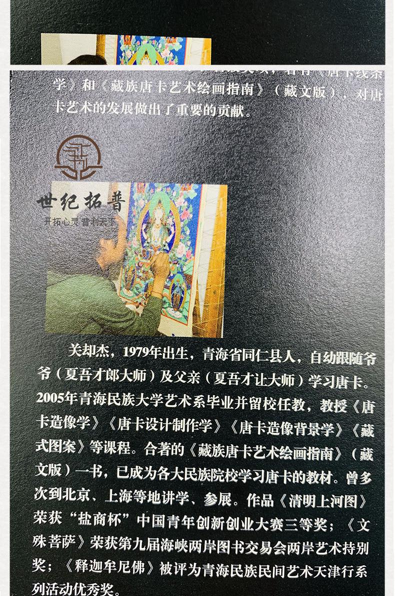 關卻傑,1979年出生,青海省同仁縣人,自幼跟隨爺爺(夏吾才郎大師)及父親(夏吾才讓大師)學習唐卡畫。 2005年青海民族大學藝術系等