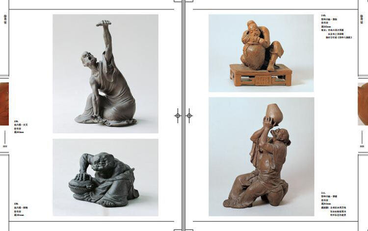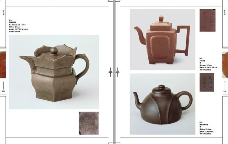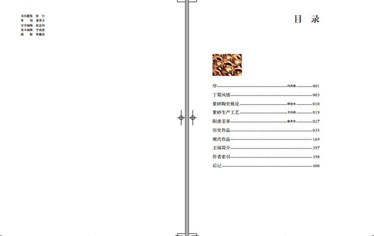 圖版部分介紹宜興紫砂精品五百一十一件(套),分歷史、現代兩大部分,按製作年代先後排列。歷史部分以一九四九年為界限,展示了明、清、民國五十八位名家的一百六十七件精品;現代部分以高級工藝師的作品為主,展示了九十一位名家的三百四十件(套)精品。