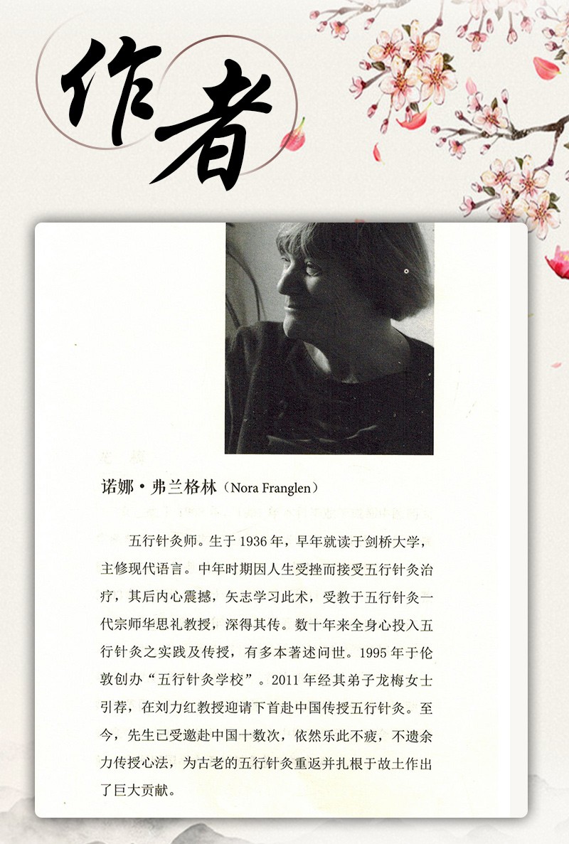 諾娜? 弗蘭格林,1936年出生,在導師華思禮教授指導下完成針灸研究生、博士生學業。 於1995年在倫敦創“五行針灸學校”,任校長。 2007年7月停止辦學後一直致力於傳播弘揚五行針灸。