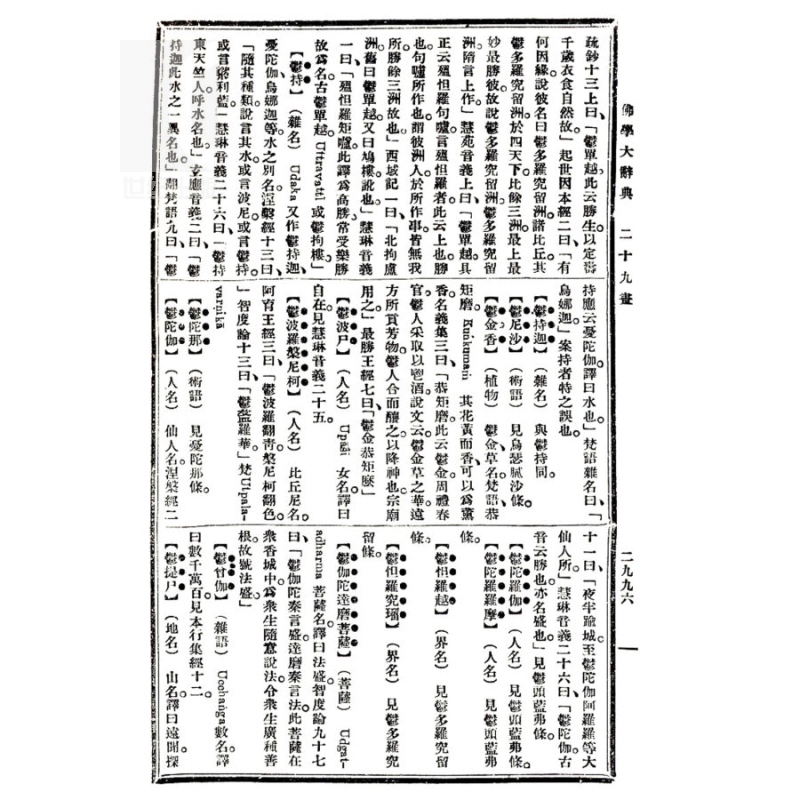《佛學大辭典》成書於1922年,其編纂始於1912年,是由編者丁福保歷時多年完成推出的一部新式佛學詞典。 其內容涵蓋廣泛,共收辭目3萬餘條,約360多萬字,囊括了佛教各種專有術語、典故、典籍、名詞、名僧、史迹等。 每條辭目下,均注明其類別、解釋辭義、徵引出處,便於讀者考索,重要的專名則注以梵文或巴厘文。 期間編者綜合參閱了多種佛教辭典、辭林。 作為一部中國佛學研究的重要專著,《佛學大辭典》是瞭解宗教領域及其哲學、文學、藝術和民間風俗等方面的重要著作。 正文保留有初版本的《自序》、《例言》、《通檢目次》及辭目索引等。