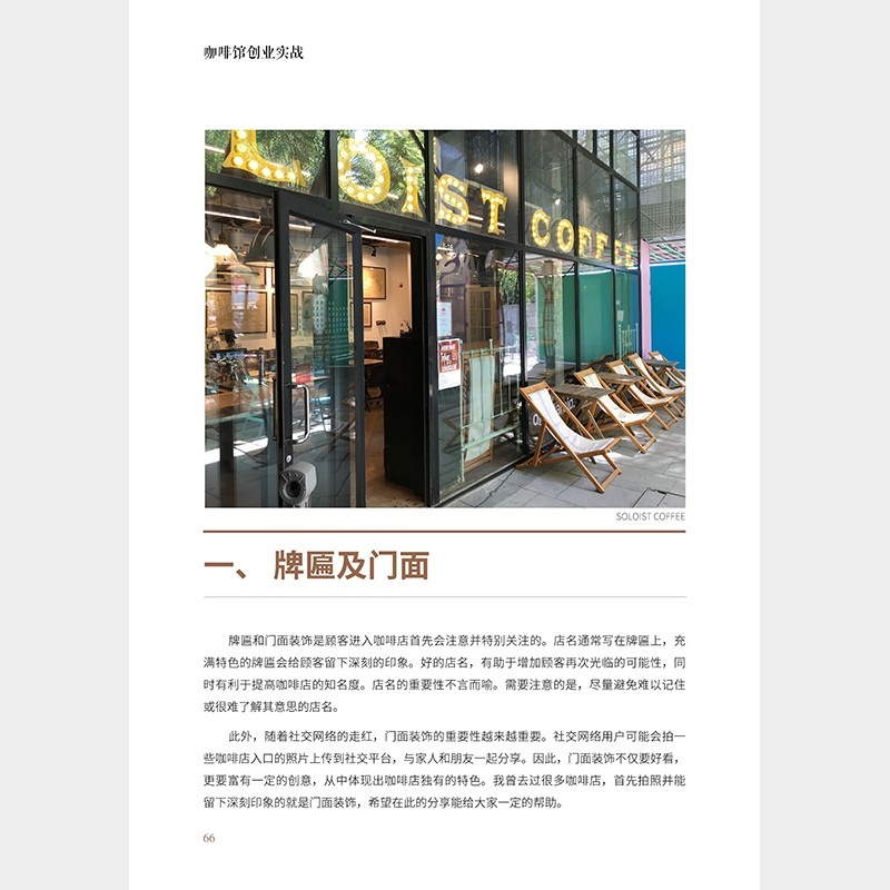 本书是一本不可多得的咖啡馆创业指南,属性涵盖了咖啡馆从无到有的整个过程。作者作为多年从事咖啡技术培训、开业指导、运营培训的专业老师,走访了中国19个一二线城市,以及韩国、意大利、美国、加拿大等国,考察了200多间咖啡馆,将所有门店的门面、招牌、装修、菜单、吧台等一一拍照记录,把十几年咖啡从业经验,以及与咖啡师或老板畅谈的经验纳入本书,分享一手探店信息和创业心法,帮助创业者建立竞争优势,降低创业风险!对于咖啡创业者和经营者,本书具有专业性的指导和借鉴意义。