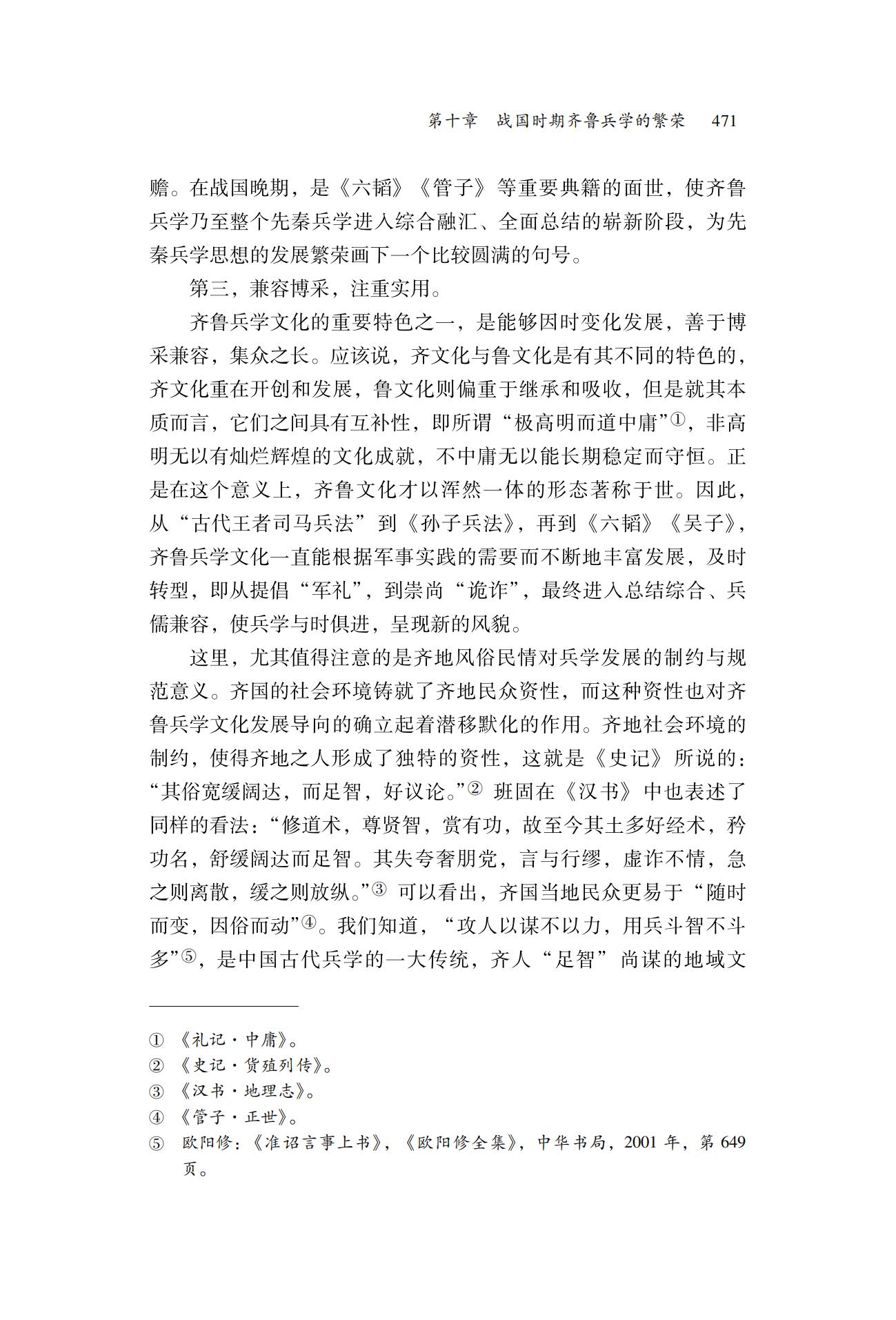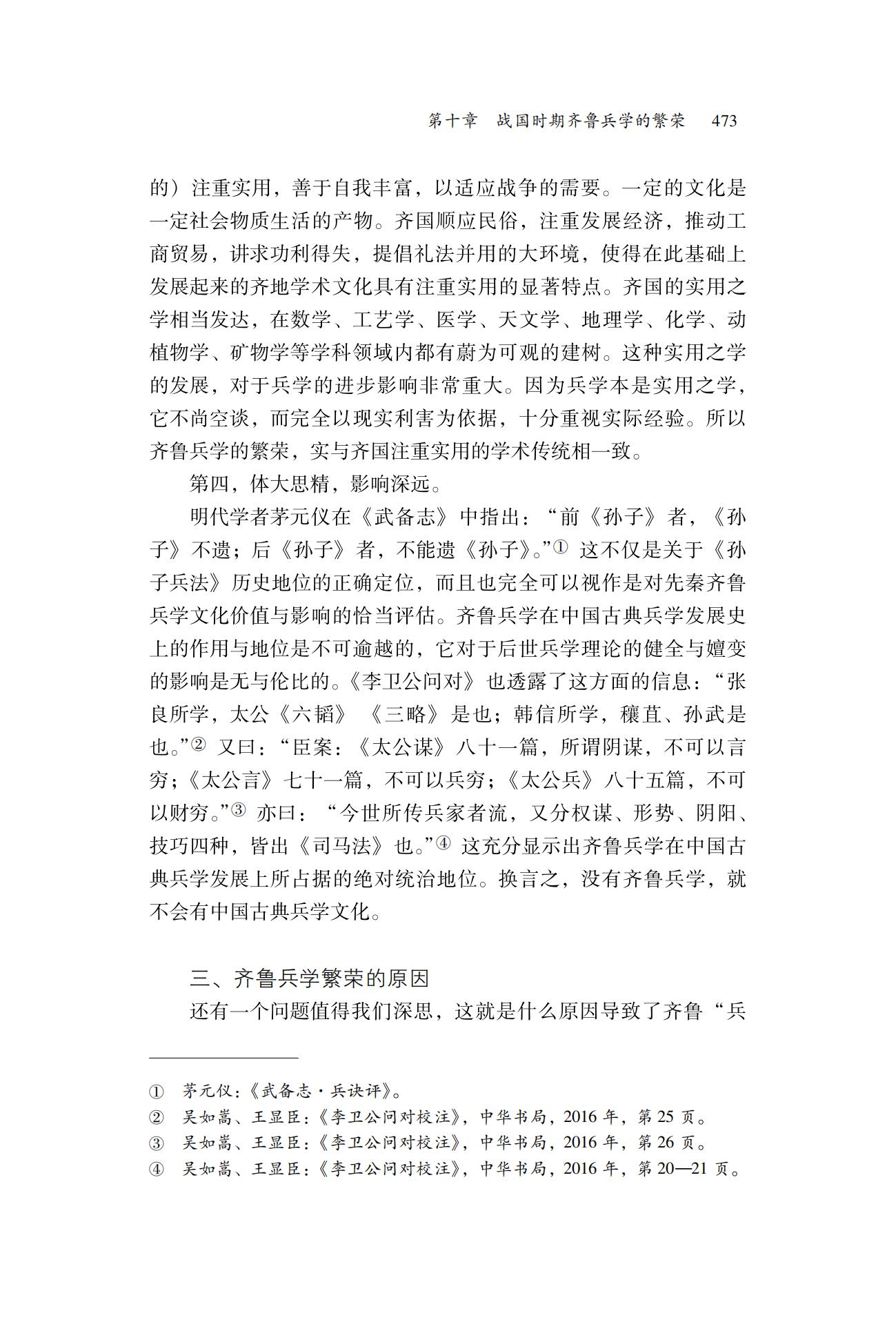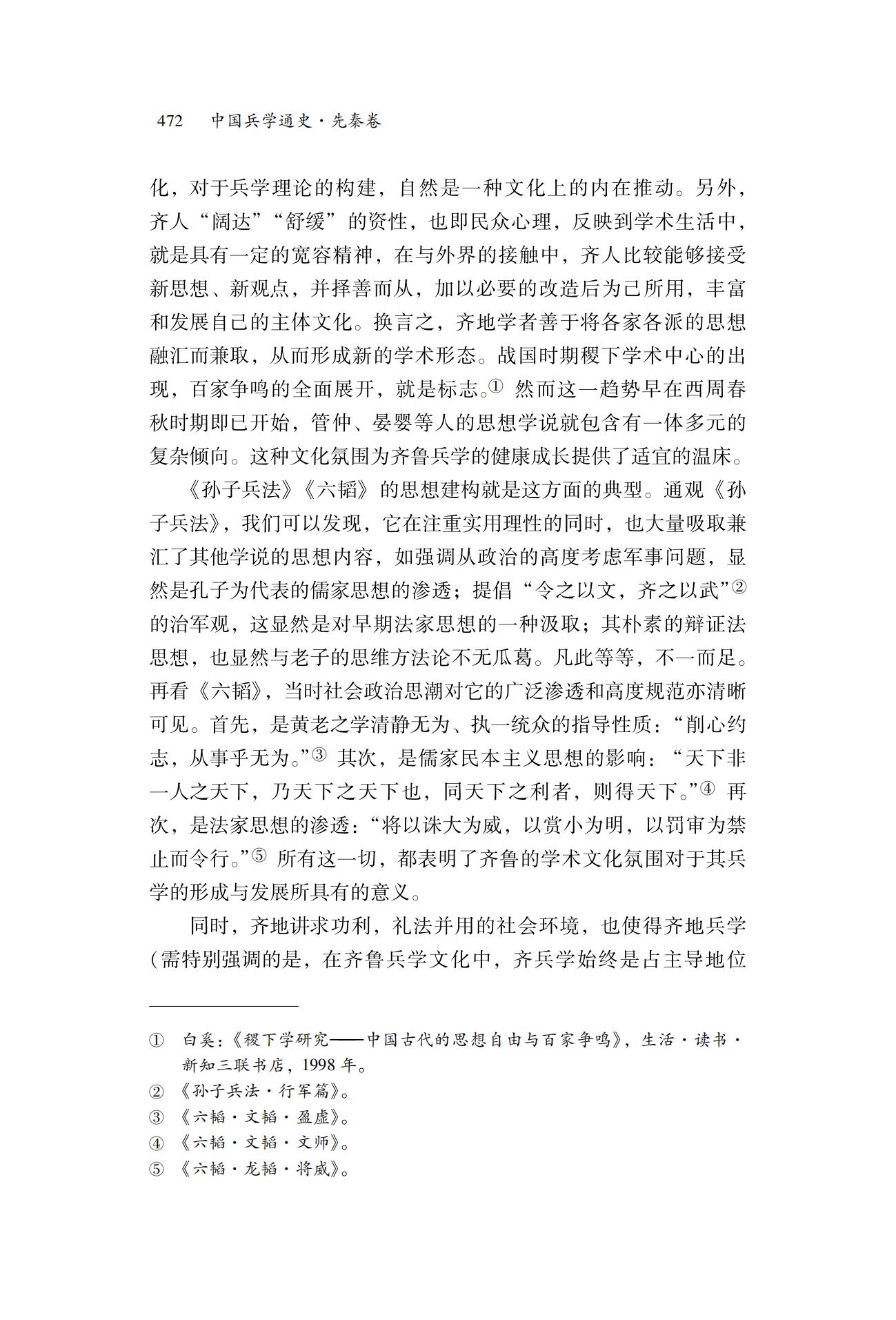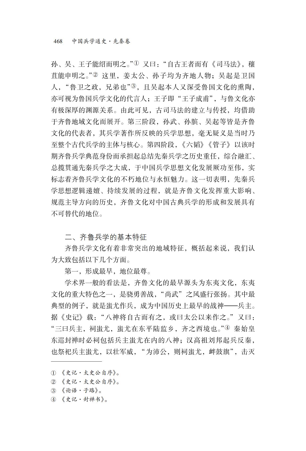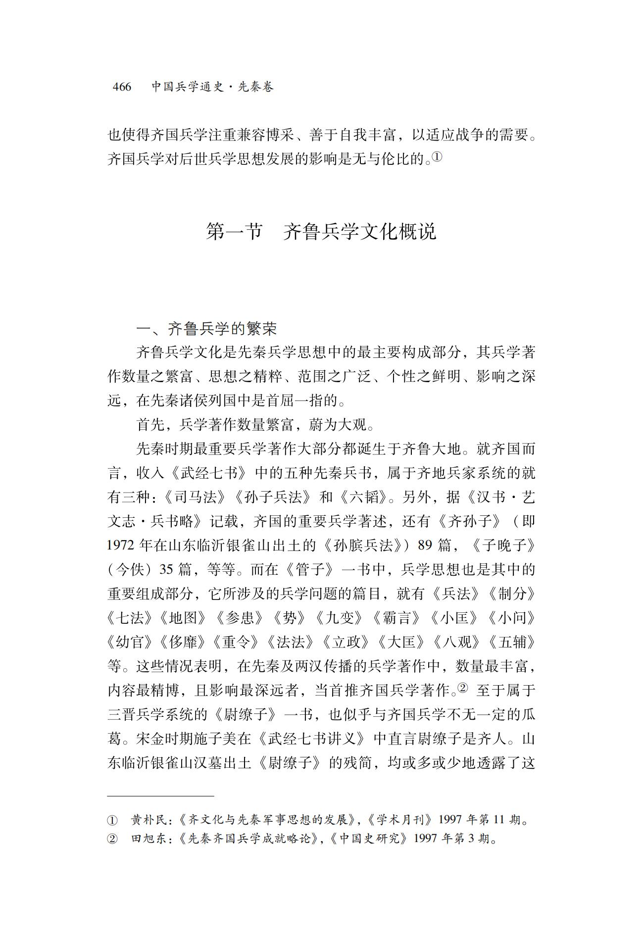 該卷釐清了先秦兵學從「競於道德」到「逐於智謀」再到「爭於氣力」的發展脈絡,深入考察了該時期代表性兵書蘊含的兵學要義,對先秦兵學的開創性地位做出了科學總結。