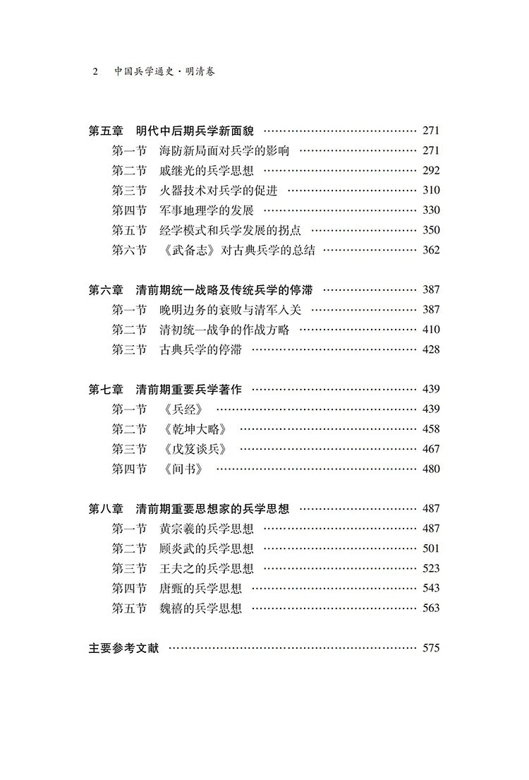 該卷重點關注重要兵書、重大戰爭、重要軍事家,全景展示明清兵學的發展軌跡和轉型歷程。由探討兵學發展的興衰出發,考察王朝更替的內在原因;由總結戰略決策的得失出發,思考歷史前行的路向選擇;由梳理軍事技術對戰術思想的影響出發,深入研究戰爭原理,深刻感受兵學領域「道」與「術」的升降。