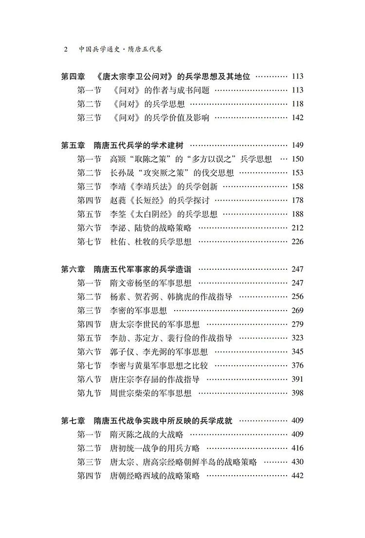 該卷立足民族和多元文化融合的時代背景,從重建大一統的歷史維度切入,系統梳理兵學演變軌跡,著重探究代表性兵書和兵家思想;結合戰爭實踐展開兵學思想專題研討,分析兵學發展動因,探討兵家統一之策與安邦之道,揭示了平天下和安天下的兵學旨歸與兵家使命,全面展示了隋唐五代兵學發展的時代風貌。