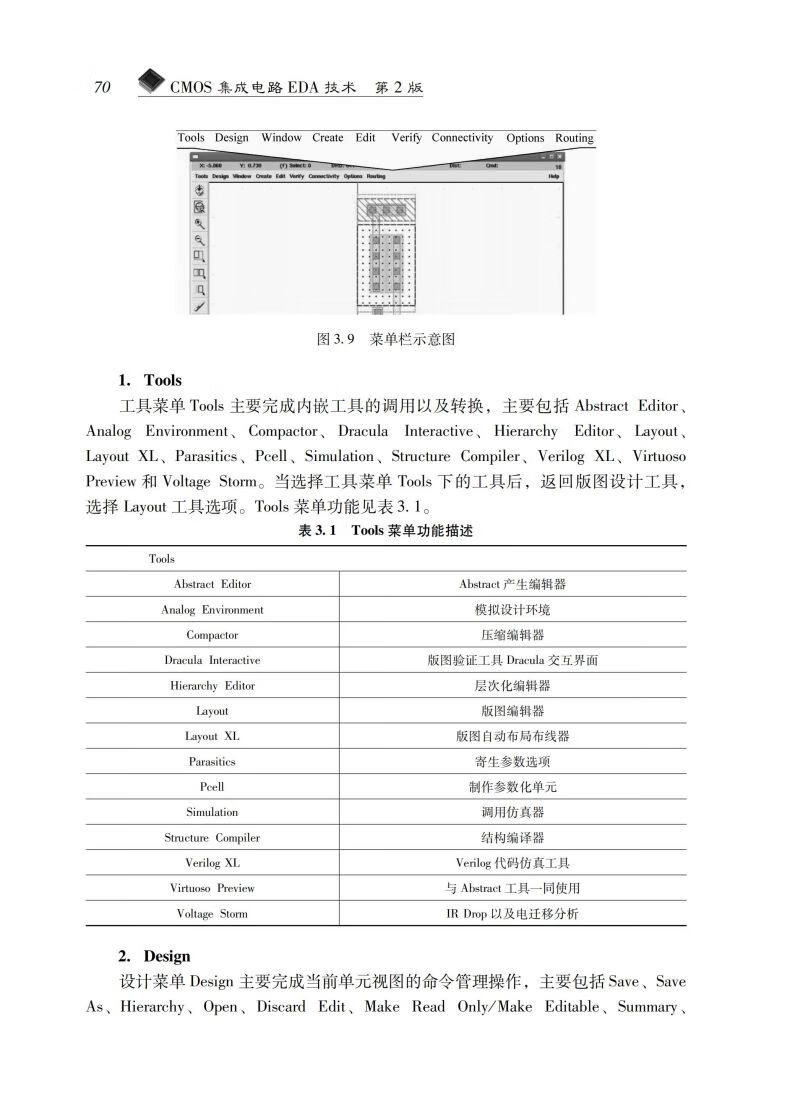 本書面向微電子學與固體電子學專業相關的課程教學要求和積體電路設計相關的工程應用需求,以提高實際工程設計能力為目的,採取循序漸進的管道,介紹了進行CMOS積體電路設計時所需的EDA工具。 主要分為EDA設計工具概述、類比集成電路EDA科技、數位積體電路EDA科技與集成電路反向分析科技等部分。 在類比集成電路方面,依次介紹了電路設計及模擬工具Cadence Spectre、版圖設計工具Cadence Virtuoso、版圖驗證及參數選取工具Mentor Calibre在內的各種工具的基本知識和使用方法。 在數位積體電路方面,在簡單介紹硬體描述語言Verilog HDL的基礎上,介紹RTL模擬工具Modelsim、邏輯綜合工具Design Compiler、數位後端版圖工具IC Compiler和Encounter四大類設計工具。* 終對集成電路使用反向EDA科技進行全面的闡述。 書中配以電路設計實例,進一步分析各種EDA工具的設計輸入方法和技巧,形成一套完整的CMOS積體電路設計流程。