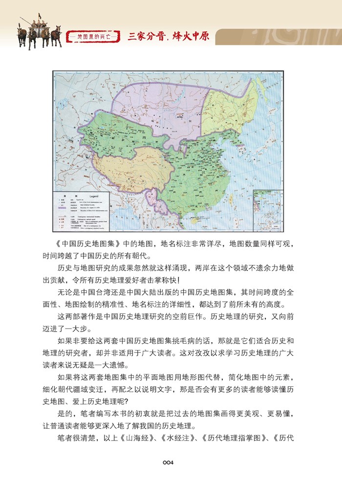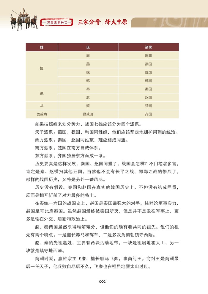 《地圖裏的興亡2:三家分晋,烽火中原》講述了趙國從光榮的禦者,到大國上卿,再與魏、韓三家分晉,經胡服騎射,終成强國。 趙國多慷慨悲歌之士,晉陽保衛戰、邯鄲之戰,趙人不屈的意志表現得淋漓盡致。