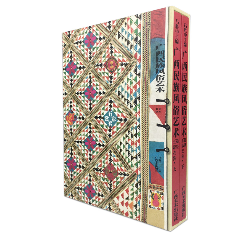 《廣西民族風俗藝術(藝術卷3):五彩衣裳(套裝上下卷)》以圖文並茂的形式介紹了廣西少數民族的衣裝大觀,以及著裝的樣式和種類,發式、首飾和衣裳襯托樸實面容等內容 ,是不可多得的民俗文化精品藏書。