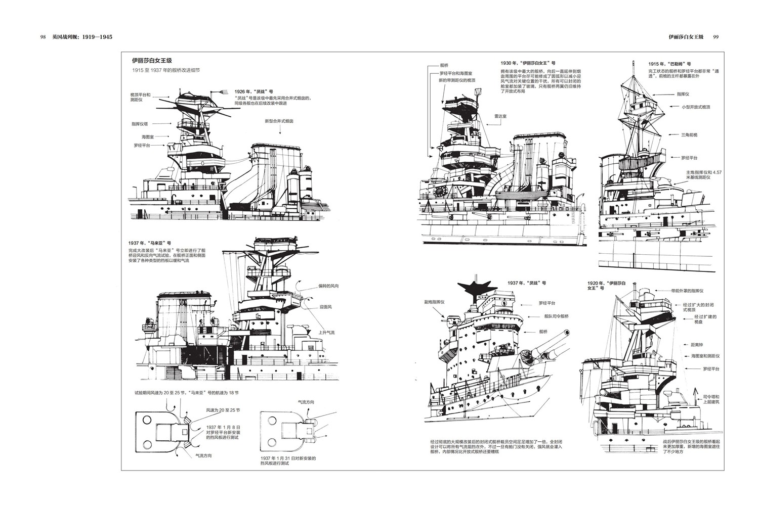 一艘戰艦在服役期間通常會經歷多次改裝,但並非所有作品都能留出篇幅詳細介紹這些改裝。 本書作者則盡其所能地按時間順序記錄了每級英國主力艦的改裝情况和外觀變化。 這些記錄作為軍艦照片的重要補充,可以幫助讀者辨別同級艦中的不同成員,和照片拍攝的大致時間。 另一方面,這些外觀變化也記錄著英國海軍對戰艦實際運用的理解與探索,以及他們為提升軍艦戰鬥力付出的努力。