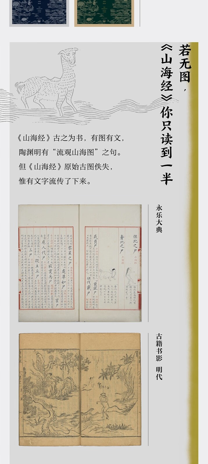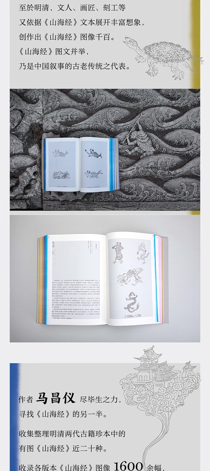 《古本山海經圖說》的作者馬昌儀盡畢生之力尋找《山海經》的另一半。 她遍搜明清古籍珍本中的《山海經》影像十餘種,收錄各種版本《山海經》之神怪畏獸影像1600餘幅,系統考證了《山海經》影像的傳承軌跡、造型流變,並以晋郭璞山海經圖贊為綱,探討明清以來《山海經》圖文關係的範式轉換。 出版至今,《古本山海經圖說》漸已成為相關主題學術研究與藝術創作的重要參考書之一。