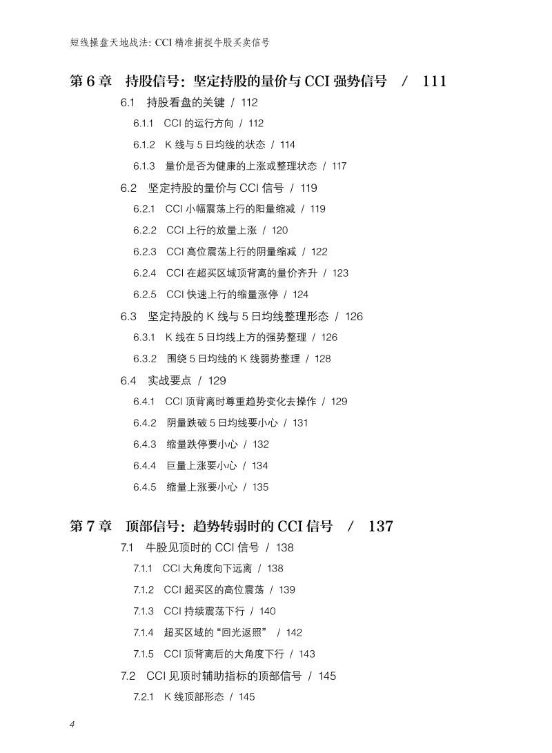 順勢名額(CCI)在判斷股價極端行情時有著其得天獨厚的優勢,因為在超買、超賣類名額中,CCI是不受常規區間限制的一個名額,可大到無窮大,小到無窮小,這也為其判斷股價在極端狀態下提供了其他名額所不具備的優勢,對於捕捉牛股加速上漲及極弱股的反彈行情,提供了可靠的依據。 本書結合短線操盤的理念,充分利用CCI名額這一獨特優勢,並結合其他名額進行有效的輔助判斷,總結出一套行之有效的短線捕捉牛股的操盤體系。 只要嚴格按照這一短線操盤體系實戰操作,即可在短線操盤中,通過CCI及其他輔助名額,準確判斷出牛股啟漲和啟跌時的買賣訊號,實現短期的快速獲利。