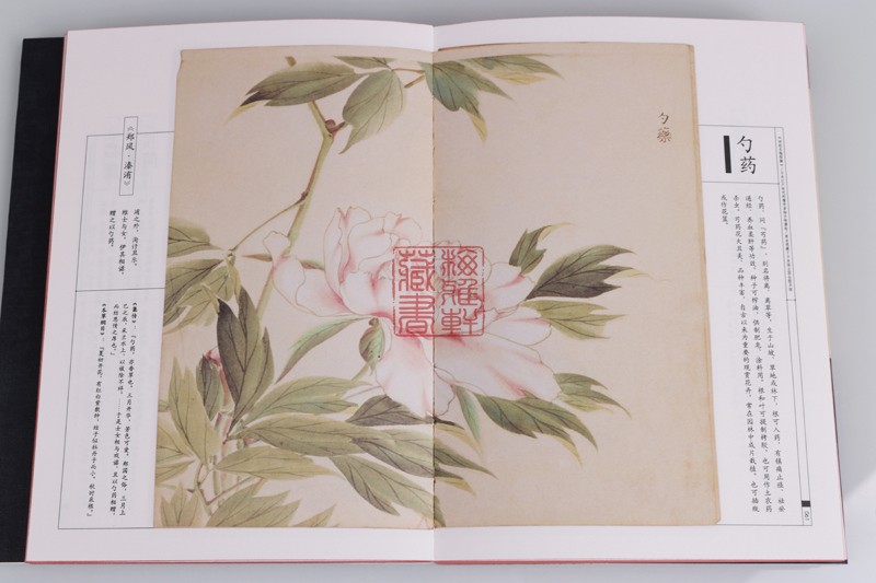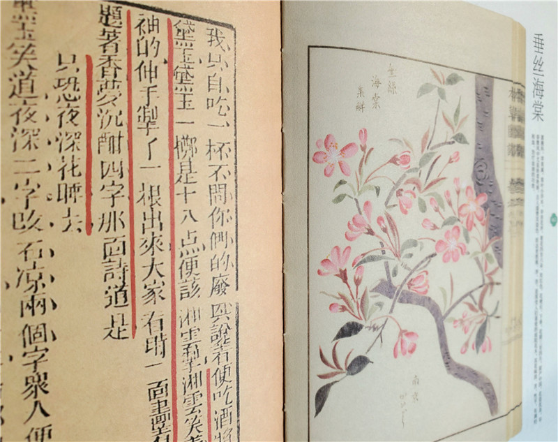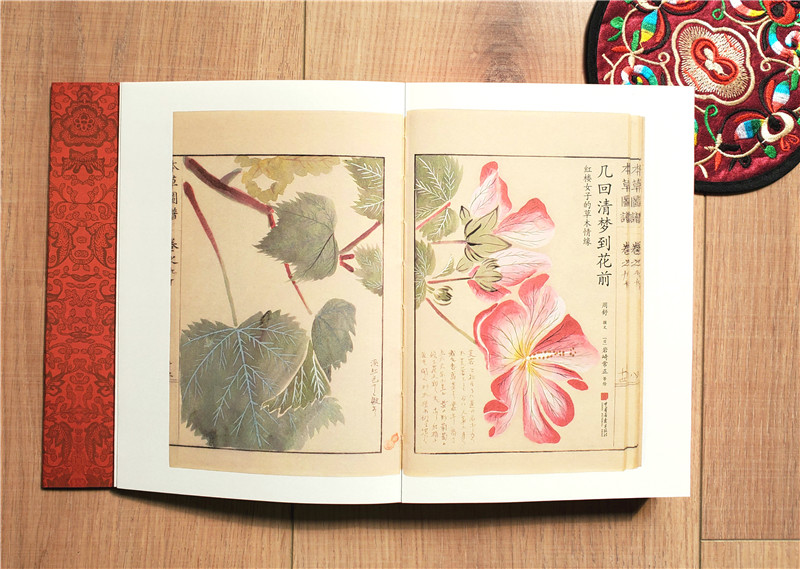 《幾回清夢到花前:紅樓女子的草木情緣》由《紅樓夢》原文提取或引申,以花喻人,探討了《紅樓夢》中四十三位女性的花草映射和八種可窺見精雅生活的代表植物,配有五十餘幅日本江戶時代著名本草學家岩崎常正《本草圖譜》手繪原稿及九十四幀清光緒求不負齋《增評全圖足本金玉緣》繡像,將古典文學與植物學完美融合,角度獨特,為諸多“紅迷”提供了《紅樓夢》的另一種打開方式。裝幀設計方面延續《美了千年,卻被淡忘:詩經名物圖解》以及《花開未覺歲月深:二十四節氣七十二候花信風》的“書中書”形式,裸脊鎖線裝訂,三面朱紅色刷邊。圖美、文美、設計美,是一本不可多得的品味紅樓文化的良心之作。
