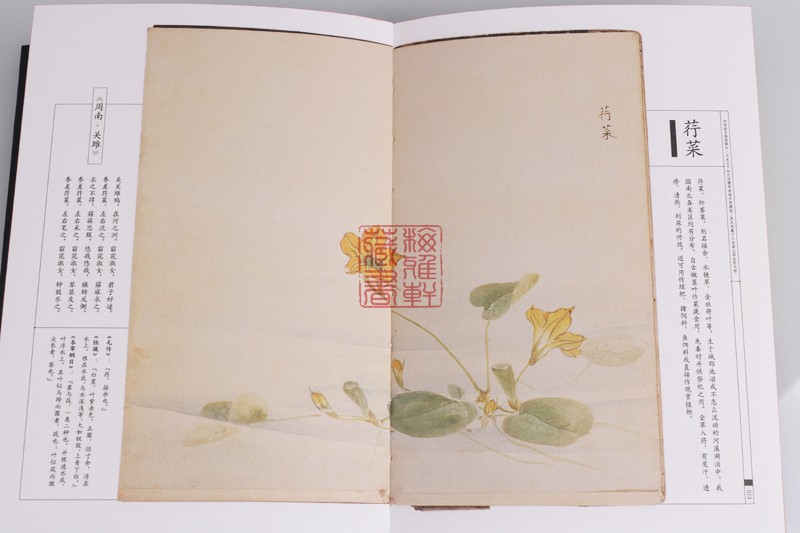本書內容主要由五部分組成:一是中國國家博物館副研究員丁鵬勃和北京民間文藝家協會會員任彤對二十四節氣民俗的闡釋;二是19世紀日本畫家巨勢小石《七十二候名花畫帖》的手繪原稿;三是中國農業大學園藝學教授義鳴放對七十二候植物的鑑賞;四是每候植物配以兩首古典詩詞;五是附有二十四張可塗色黑白線稿。另外,中國社會科學院文學研究所民間文學室主任、二〇一五至二〇一七年聯合國教科文組織非遺審查機構評審專家安德明作文推薦。裝幀設計方面延續《美了千年,卻被淡忘:詩經名物圖解》“書中書”的形式,裸脊鎖線裝訂,三面朱紅色刷邊。圖美、文美、設計美,是一本不可多得的繼承與發揚中華優秀傳統文化的良心之作。