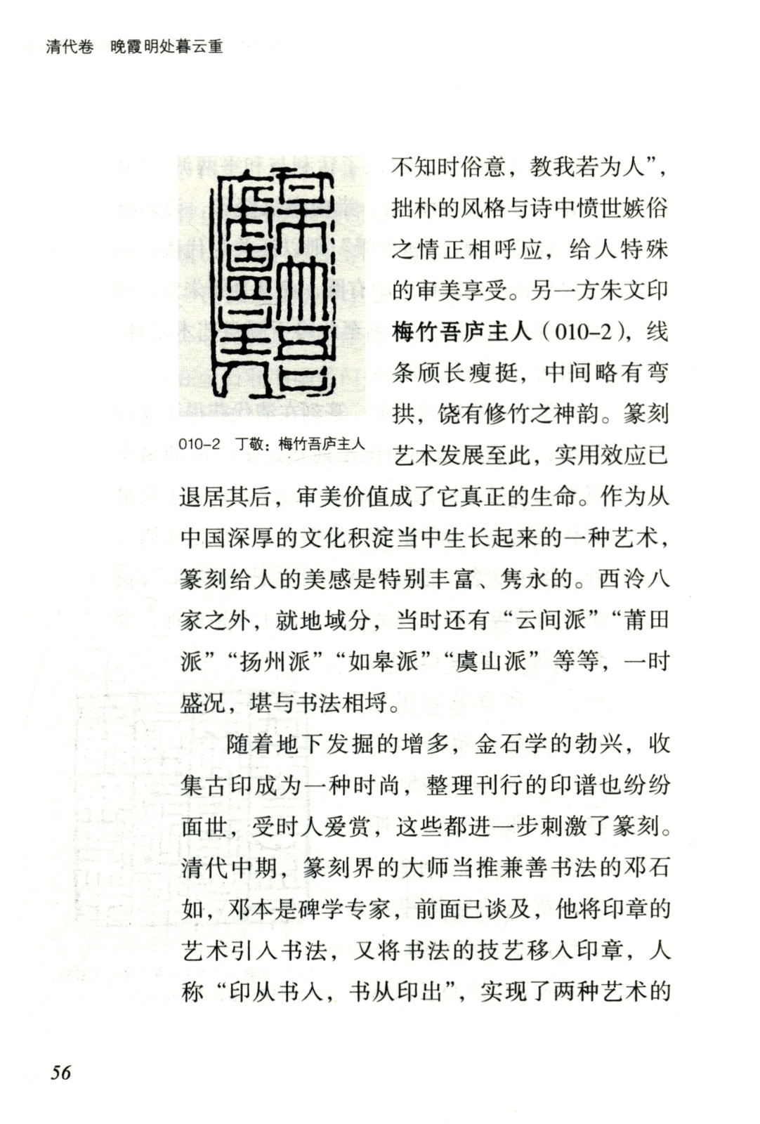 《晚霞明處暮雲重:清卷》全書通過對我國清時期大量文明遺產(包括各類工藝品、美術作品、音樂舞蹈作品、文學作品、建築、器具、各類文獻等)嚴謹詳細地審視,透過生產方式、生活方式、信仰管道、思維方式等多重因素對這些審美對象的滲透和影響, 以及這些審美對象自身發展演變的規律的考察和研究,為我們清晰地展現和勾勒出中國清代審美文化史的演進軌跡。 全書文字通暢易懂,並配以大量精美插圖,從而大大降低了接受難度。