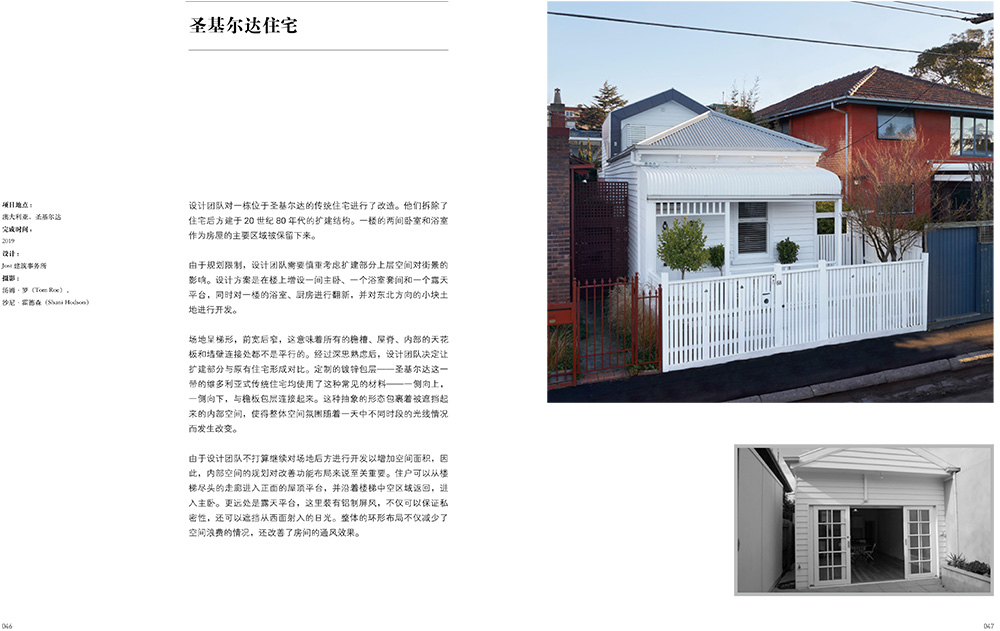 《住宅改擴建》了來自全球的26個新住宅改擴建案例,每一個項目都附有改造前後的對比照片,以及建築師對整個過程的解析——從佈局規劃、材料選擇到設計建造,再到如何克服場地和預算帶來的限制。