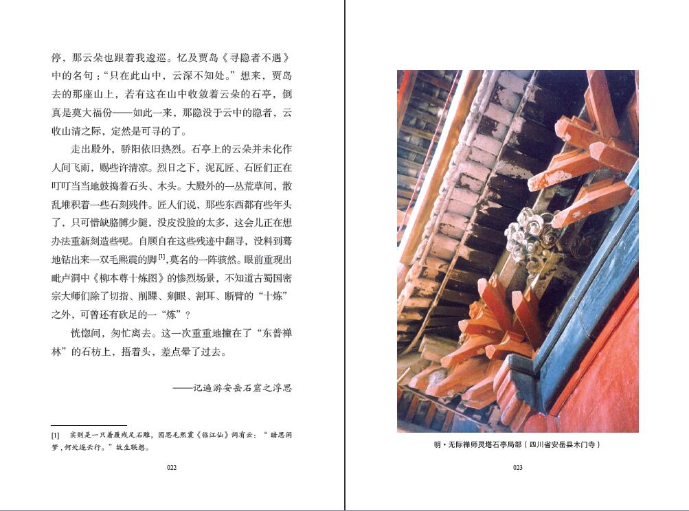 《觀·禪》:靜觀唐宋古剎摩崖石窟,參悟通靈奇秀返璞洗禮;《鏡·象》:景觀只是單純的視覺享受,“風景”才是觸動靈魂的解藥。景,是自然而然的物質空間; 觀,是視覺使然的心靈享受; 風,是靈犀一點的通透領悟。