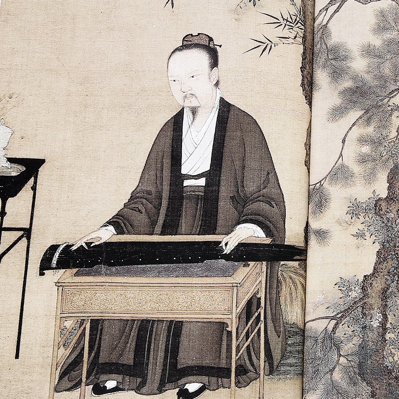 眾所周知,宋徽宗以花鳥畫名於畫史,山水畫古來罕見。《雪江歸棹圖》是宋徽宗極為少見的山水作品,所描繪的是寒林意境幽遠,雪景用筆娟細鬆動,所畫山水樓閣以意為之,無院體界畫之工緻,點畫勾勒常有意到筆不到之處。點景人物著筆不多,身形動態躍然紙上。畫中山石皴法與王詵似有淵源但更為蕭散,此種意境董其昌認為或受王維山水畫的影響。宋徽宗的人物畫也不多見,傳世的《聽琴圖》《文會圖》工整清麗,用筆纖巧遒勁,同樣表現出了精深的繪畫功力。宋徽宗人物畫的風格不同於前代吳道子的厚重樸實,呈現出一種清雅雍容之態。這種明麗的畫風被後世宮廷人物畫所繼承。