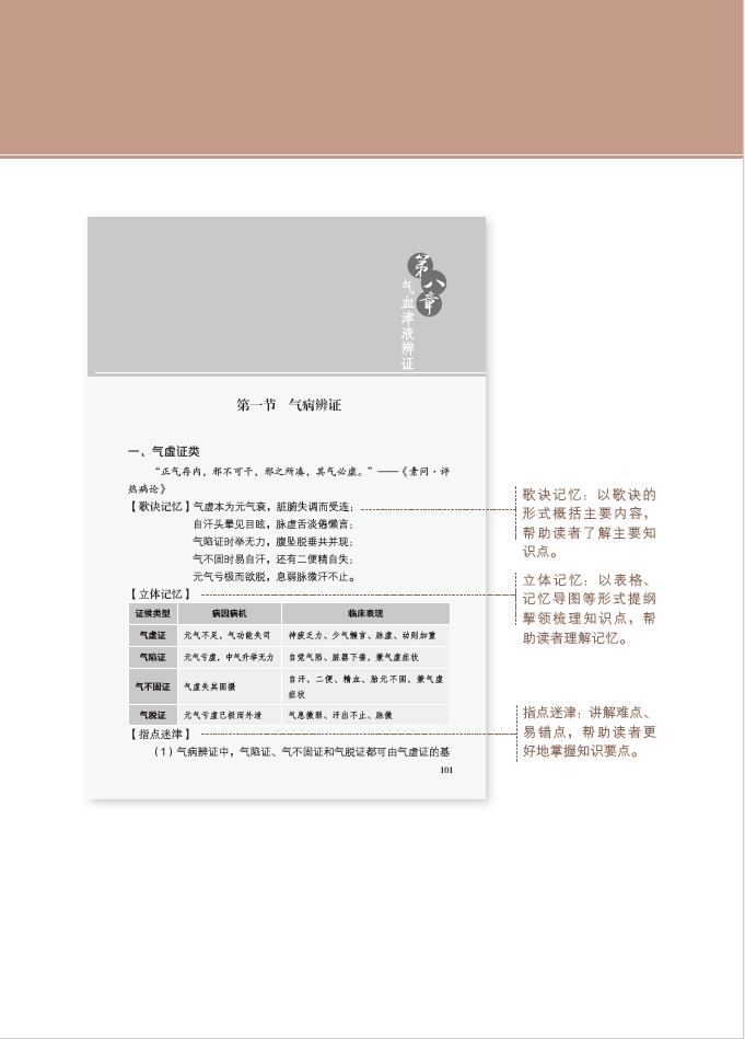 ②歌訣記憶:以歌訣的形式概括主要內容,幫助讀者瞭解主要知識點。