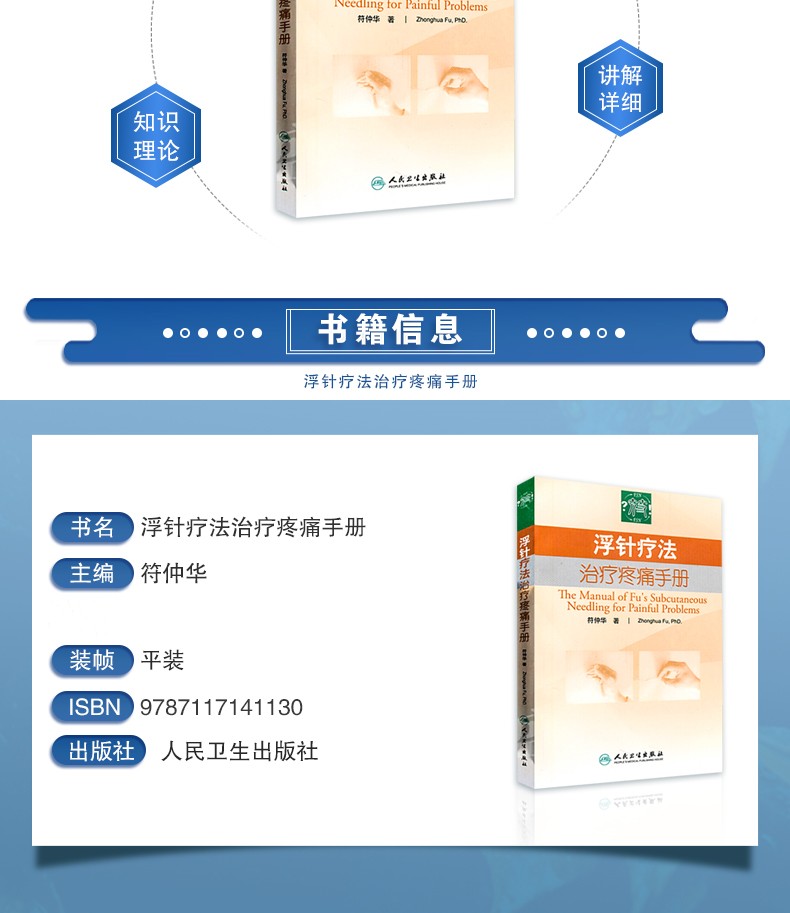 第1章浮針療法概論第1節浮針療法的概念和命名一、浮針療法的概念二、浮針療法的命名第2節浮針療法的歷程一、浮針療法的形成二、浮針療法的發展第3節浮針療法的特點一、操作特點二、療效特點三、診斷特點第2章浮針療法的操作方法第1節明確診斷第2節浮針針具的結構和規格一、浮針的結構二、 浮針規格、外觀及保存第3節針刺前的準備一、選擇體位二、解釋說明三、明確病痛點四、確定進針點五、消毒第4節針刺方法一、針刺的方向二、進針、退針、運針和掃散三、留管和出針四、針刺間隔時間、次數和療程第5節浮針療法的輔助動作第6節异常情况的處理和預防一、皮下瘀血二、暈針三、 動脈出血第7節浮針療法注意事項第3章MTrP第1節概念和歷史第2節MTrP的特點和臨床表現一、MTrP的主要特點二、臨床表現三、體征四、檢測第3節MTTP的分類第4節檢查MTrP的意義和方法第5節針灸與MTrP第6節形成機理一、神經.肌肉接頭處的興奮傳遞二、骨骼肌的興奮收縮耦聯三、骨骼肌的收縮四、 能量危機學說第7節以往的治療方法一、局部噴灑與牽拉二、物理治療三、藥物治療四、注射治療五、幹針治療第8節復發因素一、機械性因素二、系統性因素第4章浮針療法臨床的一般規律第1節治療前的療效預測一、不同的病痛感覺效果不同二、不同的組織損傷效果不同三、病變範圍不同效果不同四、 不同病程效果也不同五、不同的疼痛情狀效果不同六、不同身體狀態效果不同第2節即時效果的影響因素一、診斷不對二、體位選擇不適三、進針點選擇不佳四、掃散動作不嫺熟五、左手配合不够六、病人本身的身體狀況七、 病人沒有很好配合第3節針刺次數和療效的關係第4節遠期效果的影響因素第5章浮針療法的機理第1節皮下層第2節結締組織組成和結構一、疏鬆結締組織二、緻密結締組織三、脂肪組織四、網狀組織第3節結締組織與針刺機械力的關係一、針刺手法影響最大的組織是皮下組織二、 機械力可導致成纖維細胞發生形態學變化三、機械力對成纖維細胞細胞骨架的影響四、結締組織成纖維細胞在機械力作用下的生化改變五、疏鬆結締組織與針灸、浮針的關係第4節浮針療法與液晶態理論第5節浮針療法與引徠效應一、循經感傳和引徠效應二、引徠效應與趨病性循行三、順力循行四、 回避效應五、阻攔效應第6節浮針療法與神經系統的關係一、關於針刺鎮痛的研究二、關於閘門學說第7節浮針療法的中醫傳統闡釋一、皮膚的中醫學說二、皮部理論三、近治原理四、“以痛為輸”理論五、《黃帝內經》刺法第8節我們的觀點一、關於機械力偶聯和液晶態理論二、關於神經的作用三、 關於引徠效應的作用四、 關於浮針治療後其他症狀也改變的道理第9節輔助動作的理由第6章浮針療法治療頭面部病痛第1節緊張性頭痛第2節顳頜關節痛第3節三又神經痛第4節牙痛第5節面神經炎第7章浮針療法治療頸項部病痛第1節落枕第2節揮鞭傷第3節頸椎病第4節高位頸椎病第8章浮針療法治療胸背部病痛第1節胸壁扭挫傷第2節肋問 神經痛第3節帶狀皰疹後遺神經痛第9章浮針療法治療腰骶部病痛第1節急性腰扭傷第2節腰肌勞損第3節第三腰椎橫突綜合征第4節强直性脊柱炎第5節腰椎間盤突出症第6節骶髂關節炎第7節尾痛症第10章浮針療法治療上肢部病痛第1節肩關節周圍炎第2節偏癱後肩痛第3節網球肘第4節腕管綜合征第5節類風濕關節 炎第6節橈骨莖突狹窄性腱鞘炎第7節扳機指第11章浮針療法治療常見下肢部軟組織傷痛第1節股骨頭缺血性壞死第2節膝內軟組織傷痛第3節慢性膝側軟組織傷痛第4節急性踝關節扭傷第5節陳舊性踝關節損傷第6節跟痛症第7節痛風性關節炎第12章浮針療法治療內科病痛第1節慢性胃炎第2節膽石症第3節輸尿管結 石第4節痛經第5節慢性盆腔痛第6節癌痛附常用名詞解釋後記
