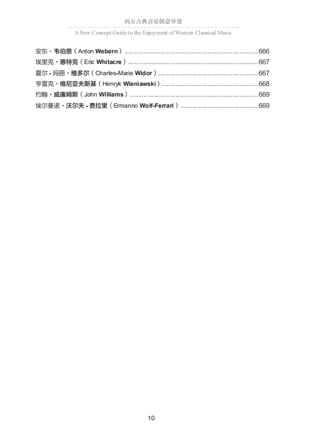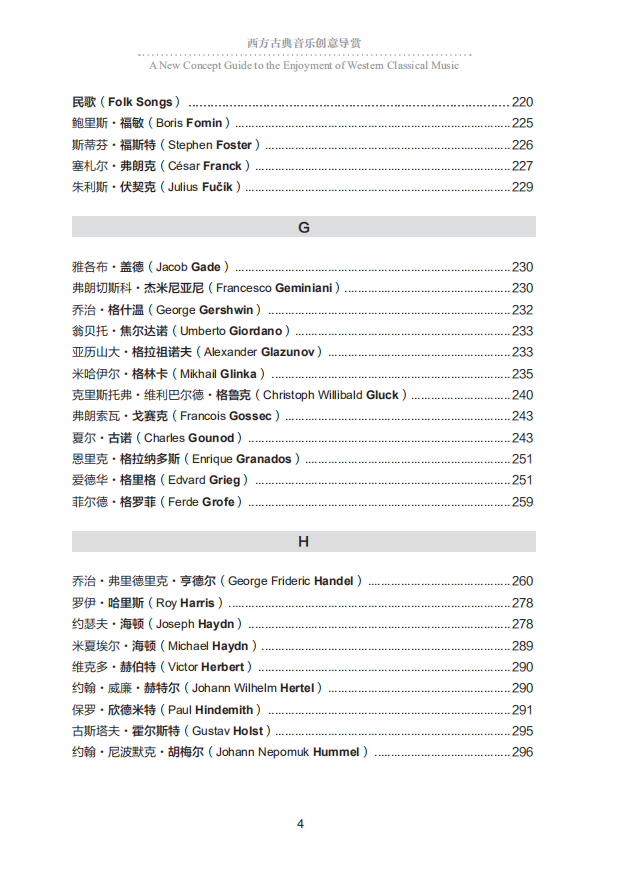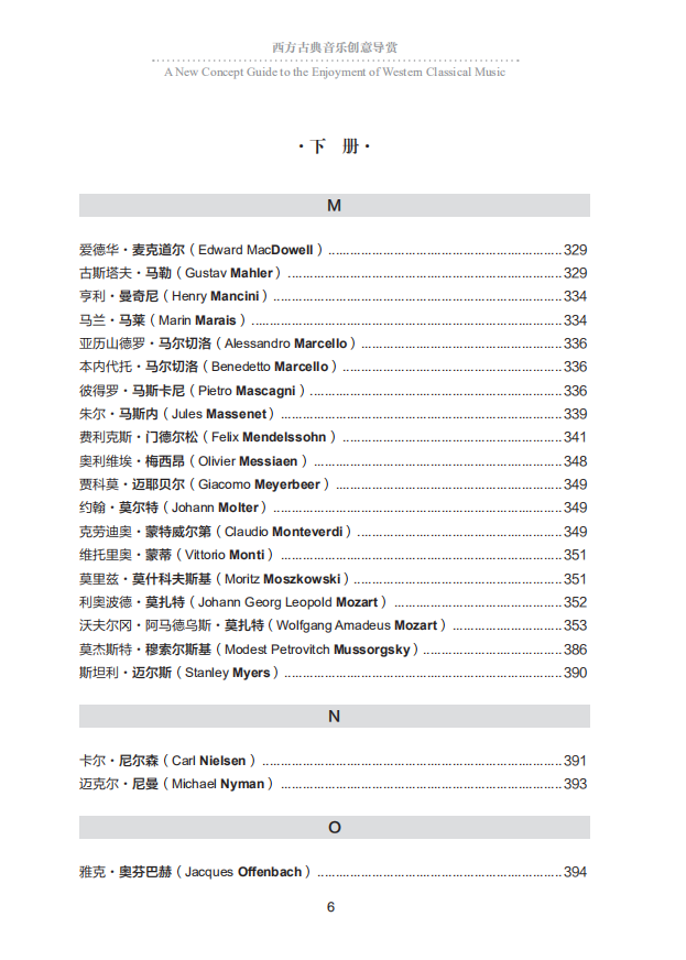 本書介紹西方古典音樂,將作品列為重點,將其按照難易程度分別歸入四大階梯,並對大多數作品加以簡單解說,以便於讀者“拾級而上”。* 階梯:此階梯的作品與西方文化傳統的相關度*,不需要音樂知識墊底。 具有不同文化背景、不同文化水准的人,普遍能够欣賞。 第二階梯:第二階梯的作品,則需要聆聽過一定數量的作品作為鋪墊,才能真正喜歡。 第三階梯:欣賞第三與第四階梯的作品,則需要有更廣闊的知識面,對西方文化傳統、西方各民族的音樂欣賞習慣、具體音樂作品創作的歷史背景有更多的瞭解,較長的欣賞經歷、更多作品的鋪墊、對不同風格作品較大的包容度,以及較豐富的音樂基本知識。 第四階梯:列入這一階梯的,首先是大多數現代主義音樂作品。 這種音樂打破了傳統音樂的基本法則,常常超越了人們的聽覺和音樂欣賞習慣,故而欣賞難度*。