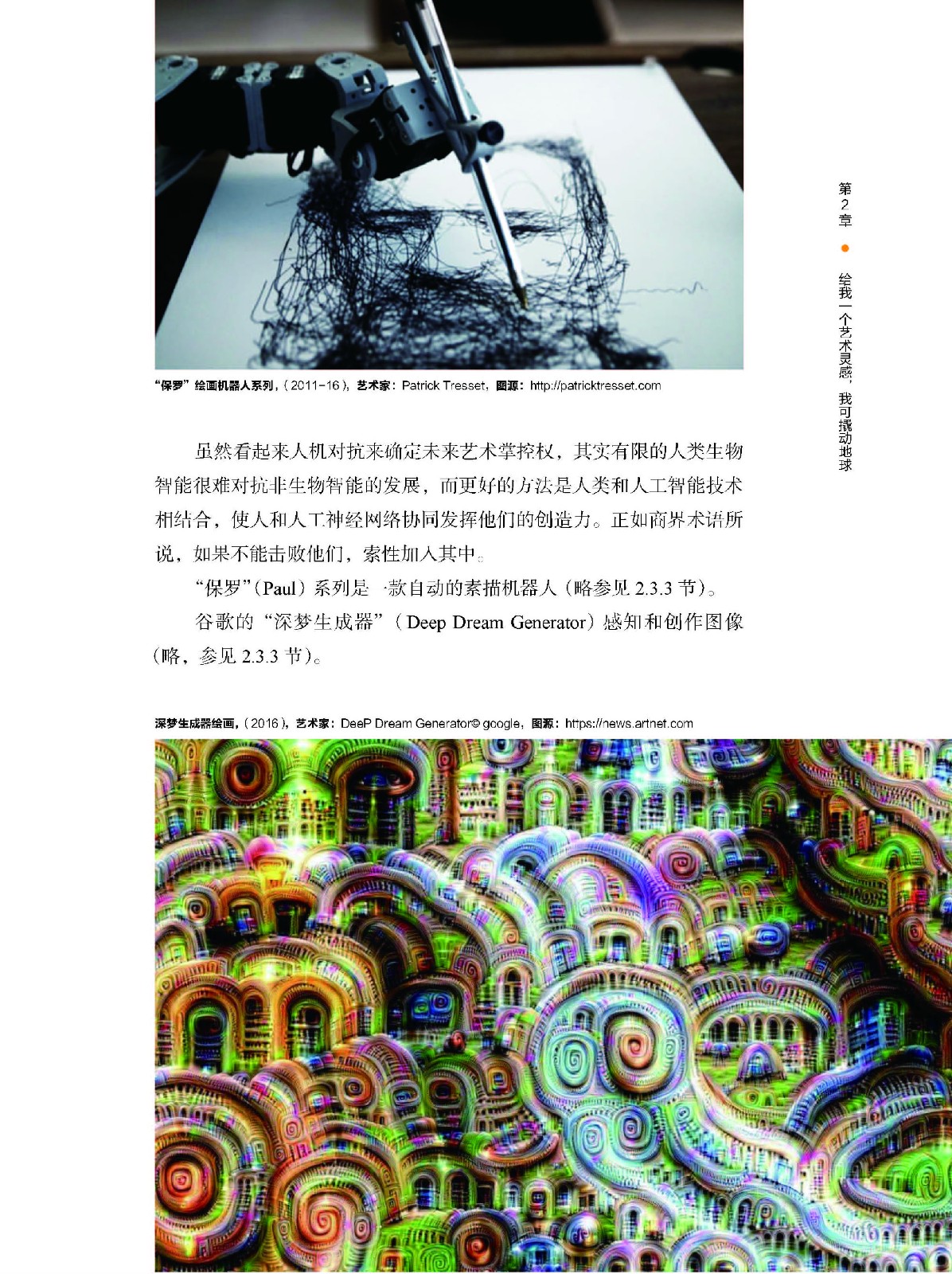 第2章:重點演繹了强人工智慧藝術的未來擴展軌跡與特徵; 論述了科技智慧將重構藝術家創造力的內涵、强人工智慧挑戰藝術的本質與特性。