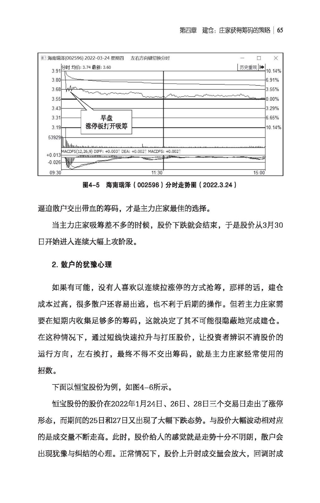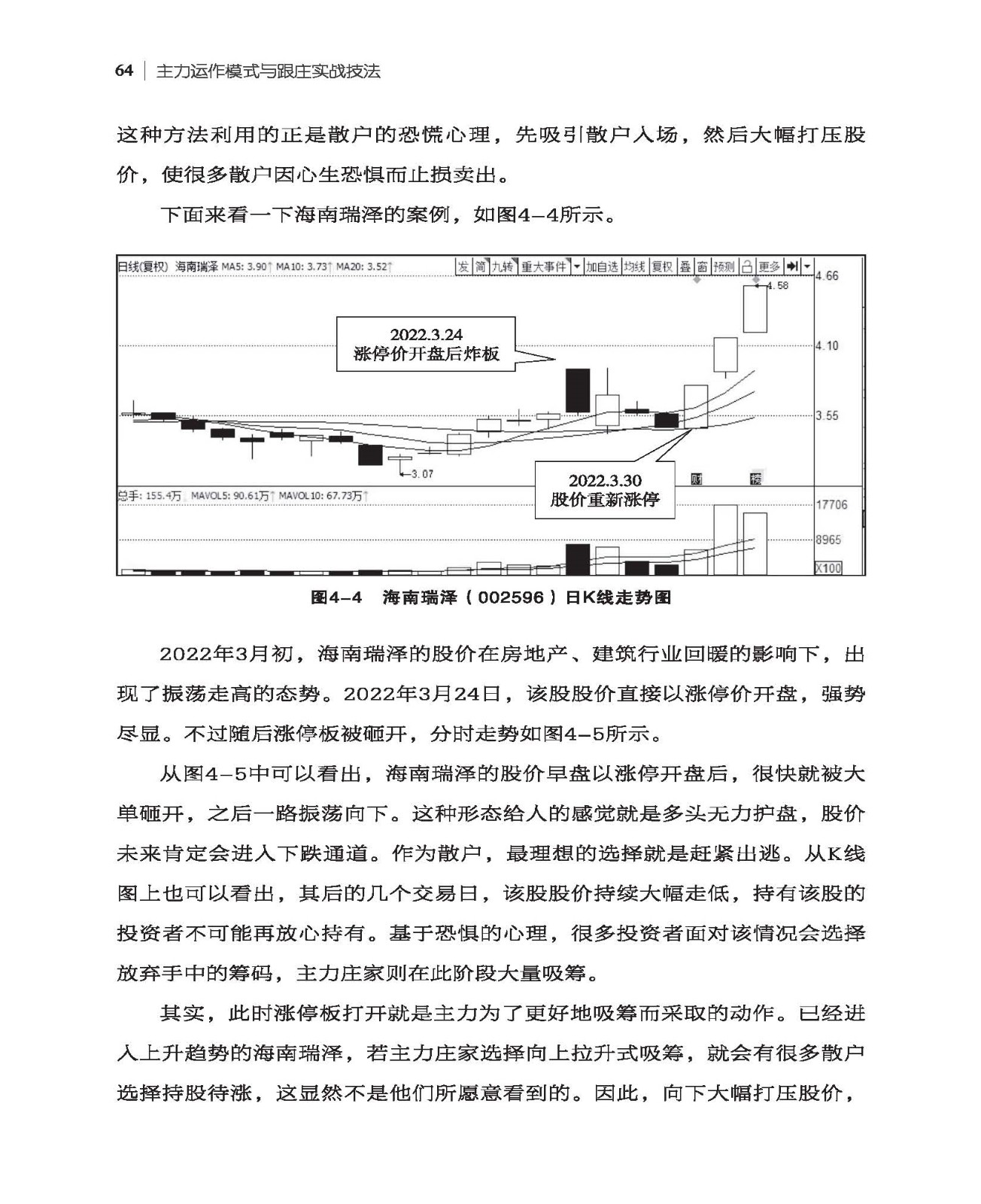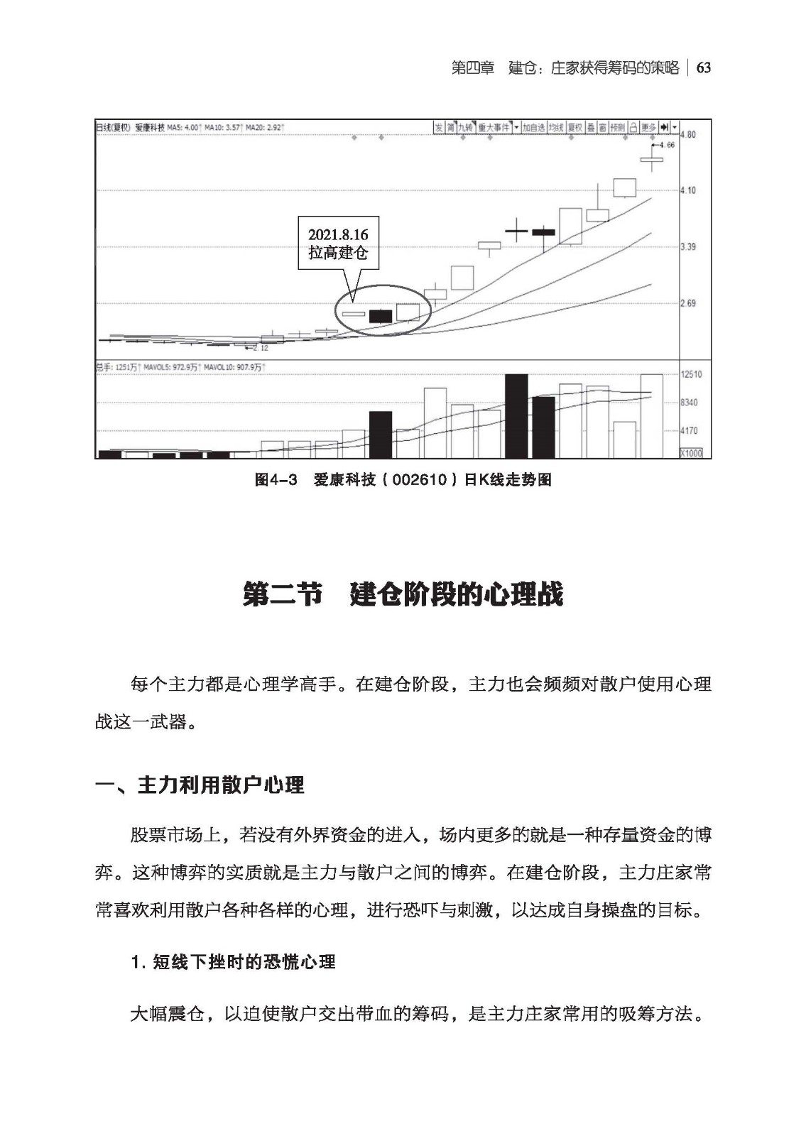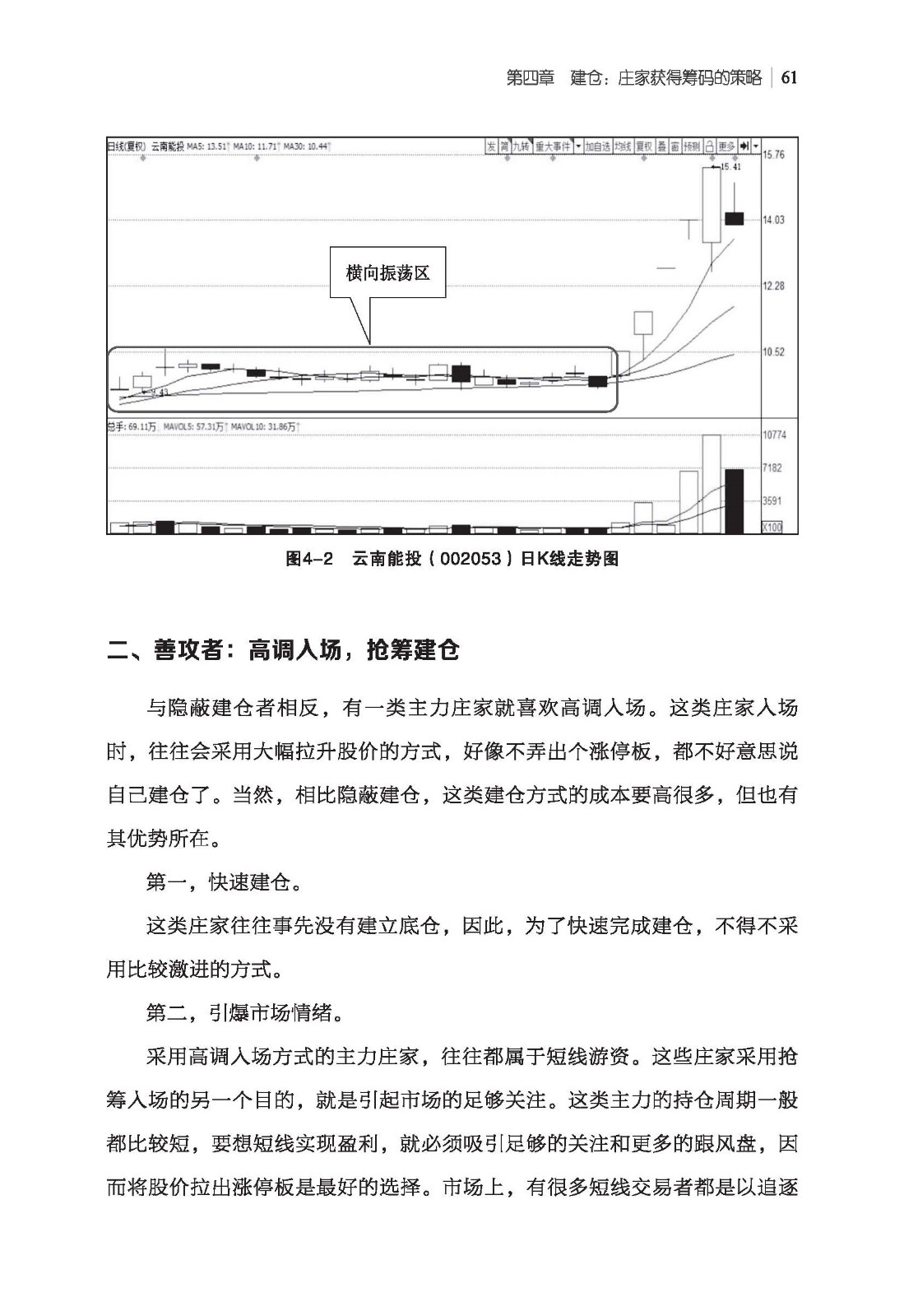 3、本書是剖析主力莊家在股市中坐莊過程及散戶投資者跟莊獲利的圖書,作者在圖書中詳細分析了主力莊家坐莊獲利的原理及坐莊操盤流程,主力莊家常用的吸籌洗盤及拉升出貨等控盤手法和操盤技巧,以及散戶投資者如何分析主力莊家操盤所處的階段,散戶跟莊操盤獲利需要注意的問題, 如何防止跳進主力莊家投置的誘空和誘多陷阱,具有較强的知識性和實戰指導價值。