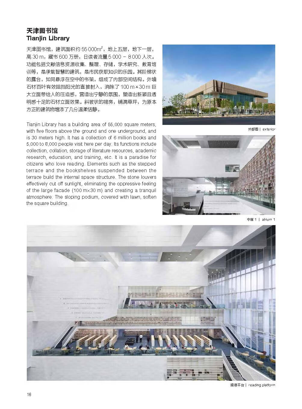 為方便讀者閱讀,本書將十個建築作品按兩類進行歸納敘述,前六個是繼承傳統風格的作品,如泰安道二號院辦公樓、麗思·卡爾頓酒店(泰安道四號院)、天津職業大學、天津市民族文化宮、黑牛城道五福里、天津市第四中學遷址擴建工程;後四個是創造新空間、描繪現代城市生活的作品,如天津圖書館、濱海圖書館、濱海科技館、濟寧市群眾藝術館等。本書不僅是對過去十年工作的總結,更包含對未來建築設計如何“繼承和創新”的展望。