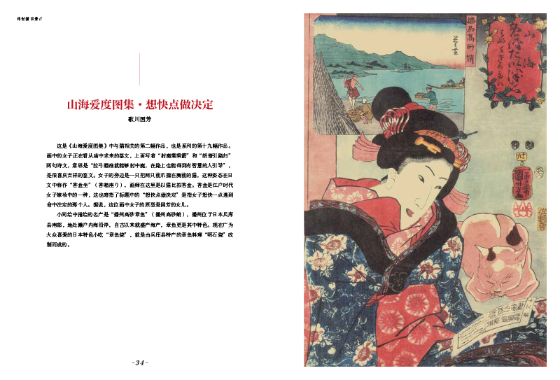 《浮世美人繪》:美人是浮世繪的重要題材,本書收錄二百七十餘幅圖片,順序梳理了三百年浮世繪中美人形象的審美演變。全書甄選了二十四位畫師的一百一十幅精美大圖,從懷月堂派美人的豐腴華麗、鈴木春信美人的纖細風情、喜多川歌麿美人的自然浪漫,再到溪齋英泉美人的妖冶不屈、鏑木清方美人的散漫耽美……回顧和展示了不同時期畫師的作品特色。