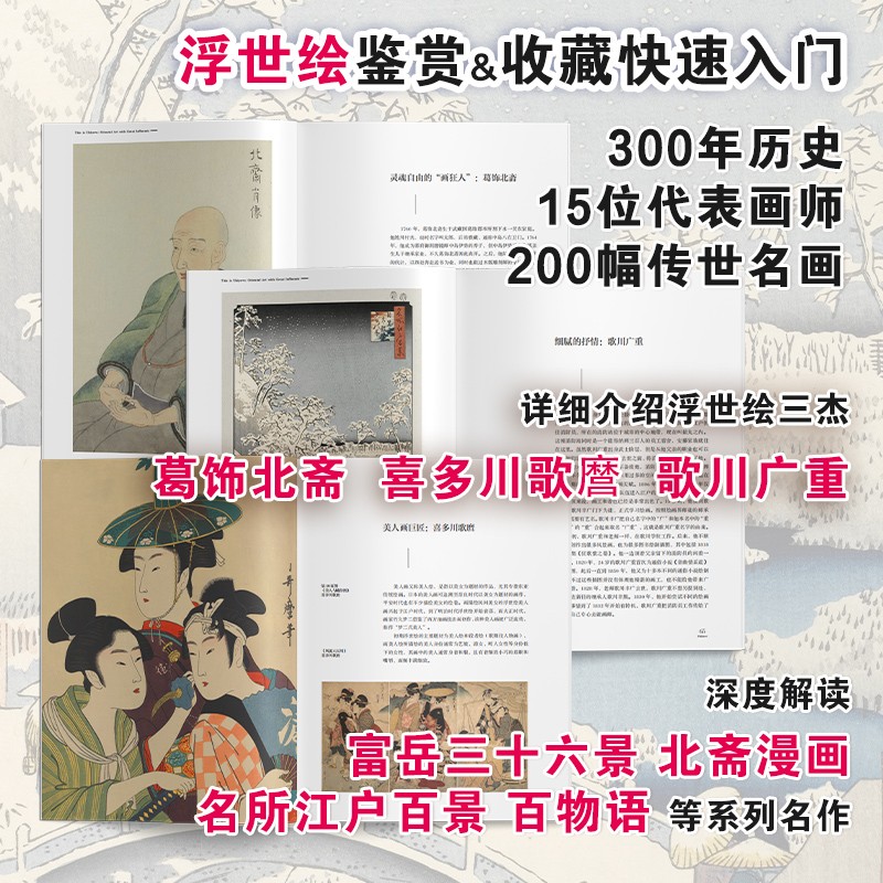 介紹包括“浮世繪三傑”——葛飾北齋、喜多川歌麿、歌川廣重在內的15位浮世繪代表畫家;梳理歌川派、鳥居派等浮世繪的主要流派。