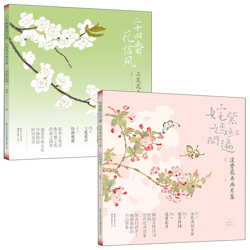 半小時前【花信風至+花間沒骨+四時節令花顏錄】全3冊 - 【奼紫嫣紅開遍:沒骨花卉畫片集+二十四番花信風:工筆花卉畫片集】全兩冊