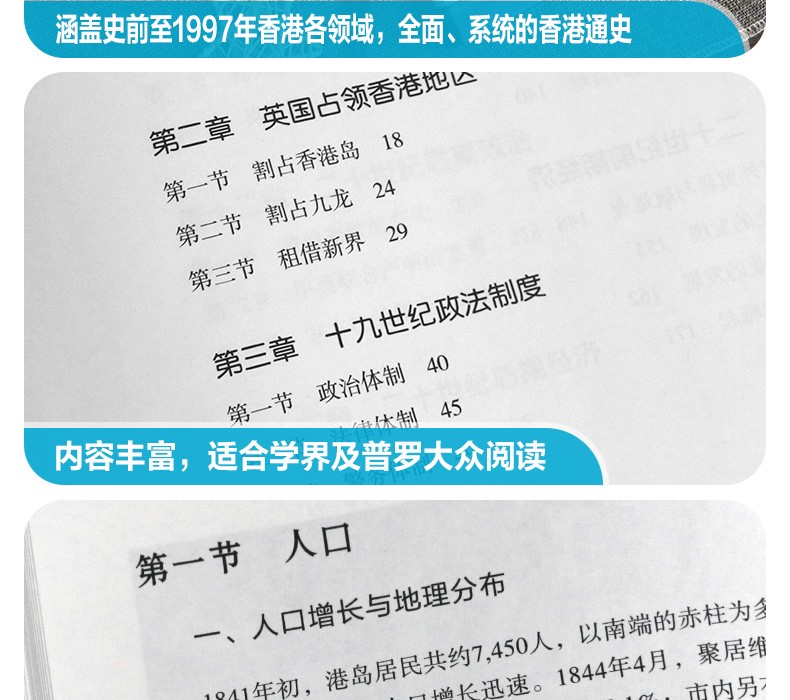 涵蓋史前至1997年香港的政治、經濟、社會、文化、教育領域